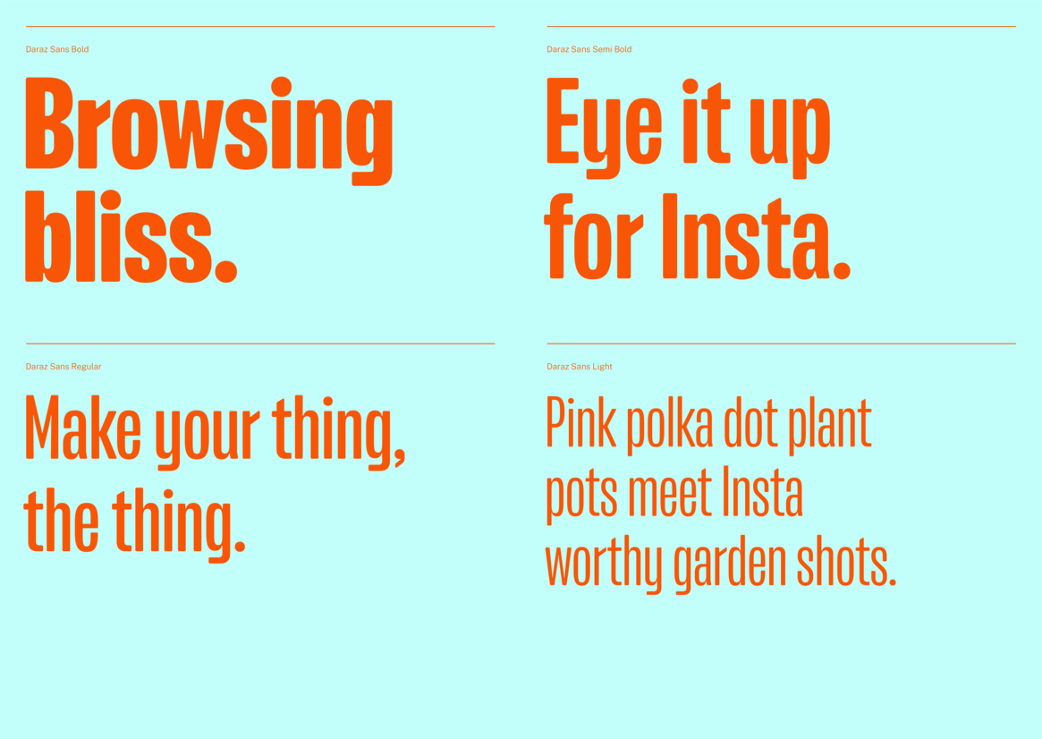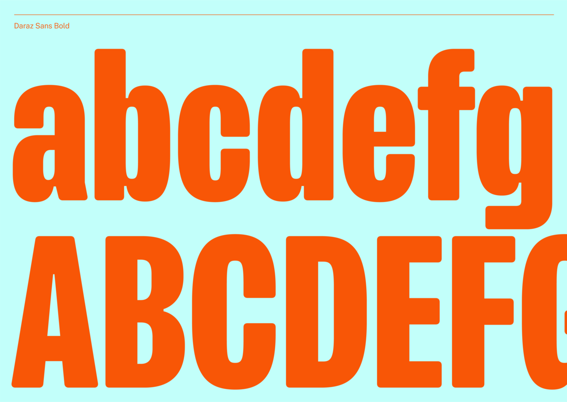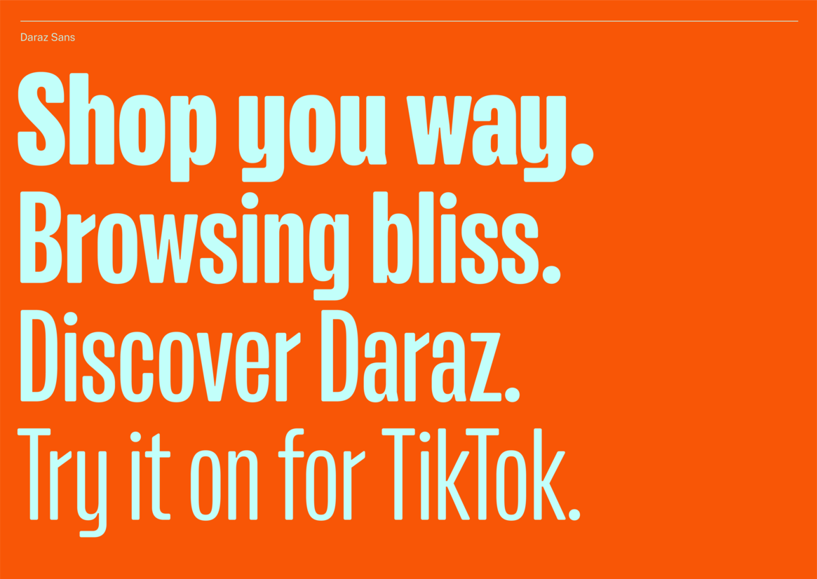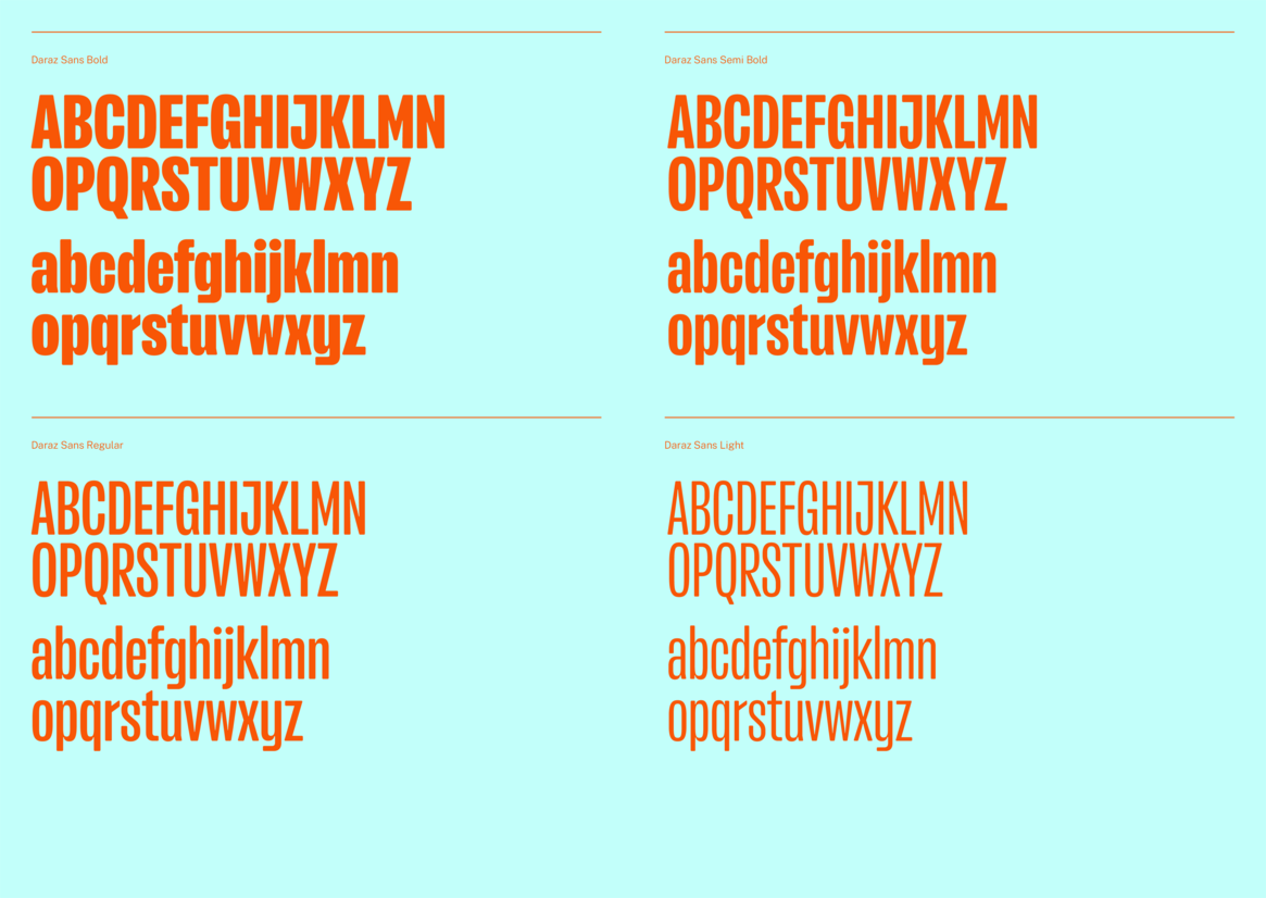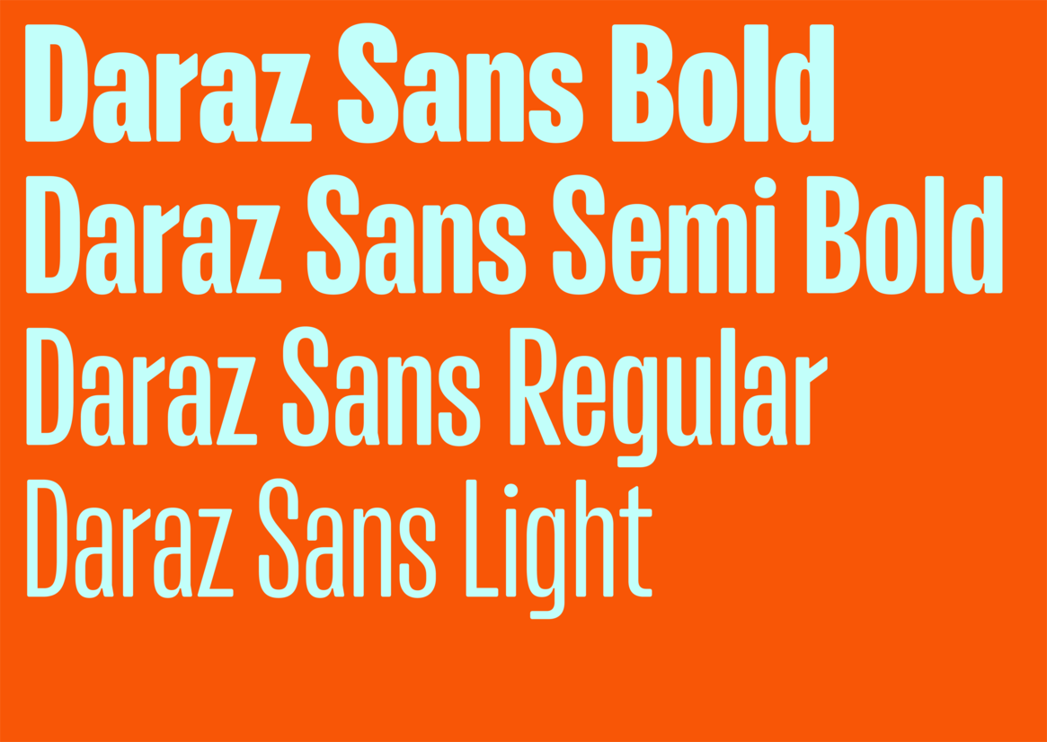 Daraz Sans was developed throughout 2021 as a brand type family for South Asia's largest e-commerce platform, Daraz. As a competitive online retailer there was a need for a typeface to provide more of a distinct brand voice, but also a family that would be adaptable to its changing campaign imagery and environments.