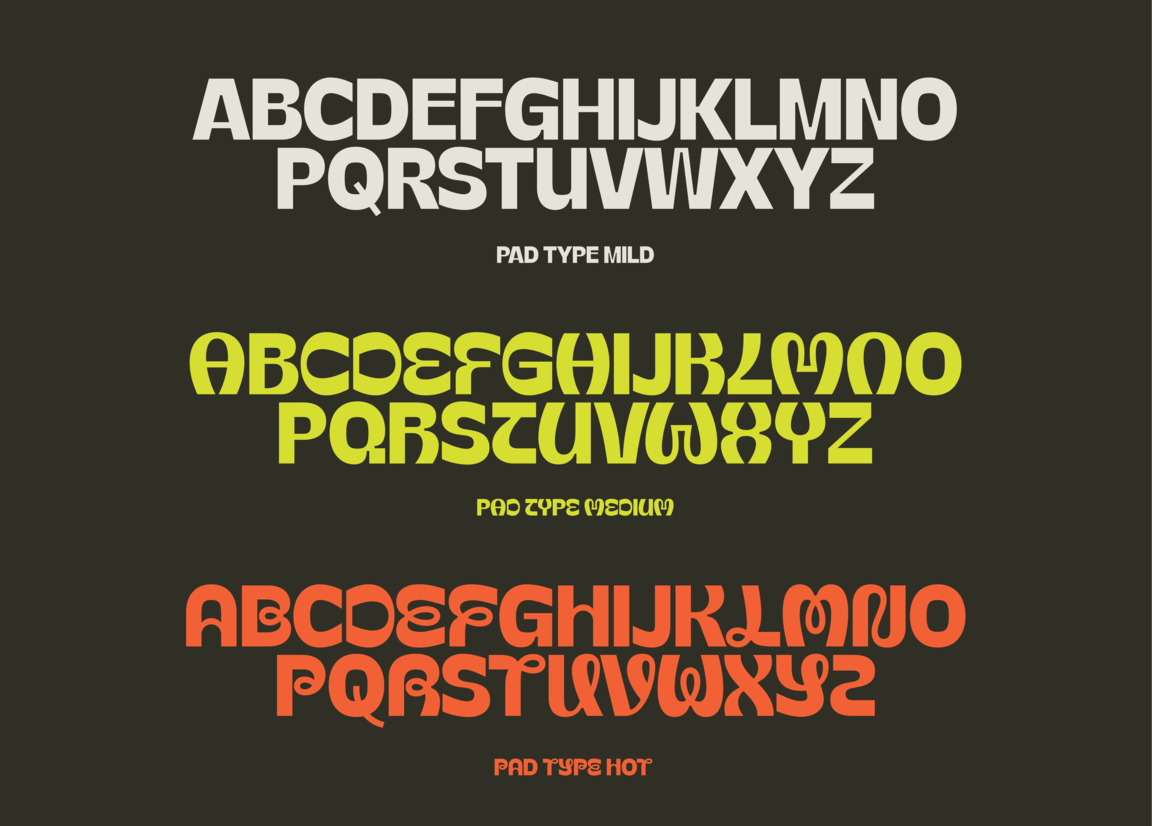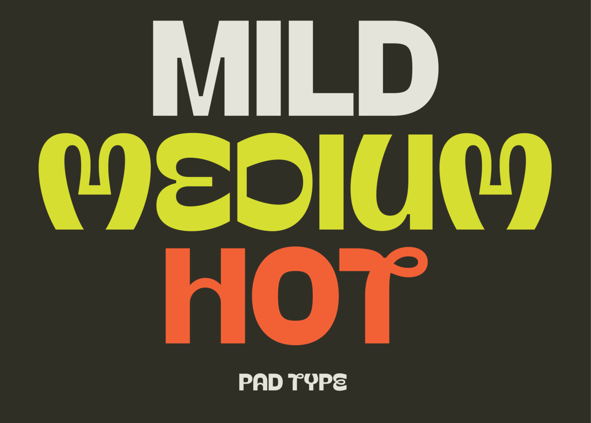 A custom typeface ‘Pad Type’ brings together design traits of regional character sets to create a quirky and playful language. With three weights mild, medium and hot used interchangeably across the identity to bring the brand’s voice to life.