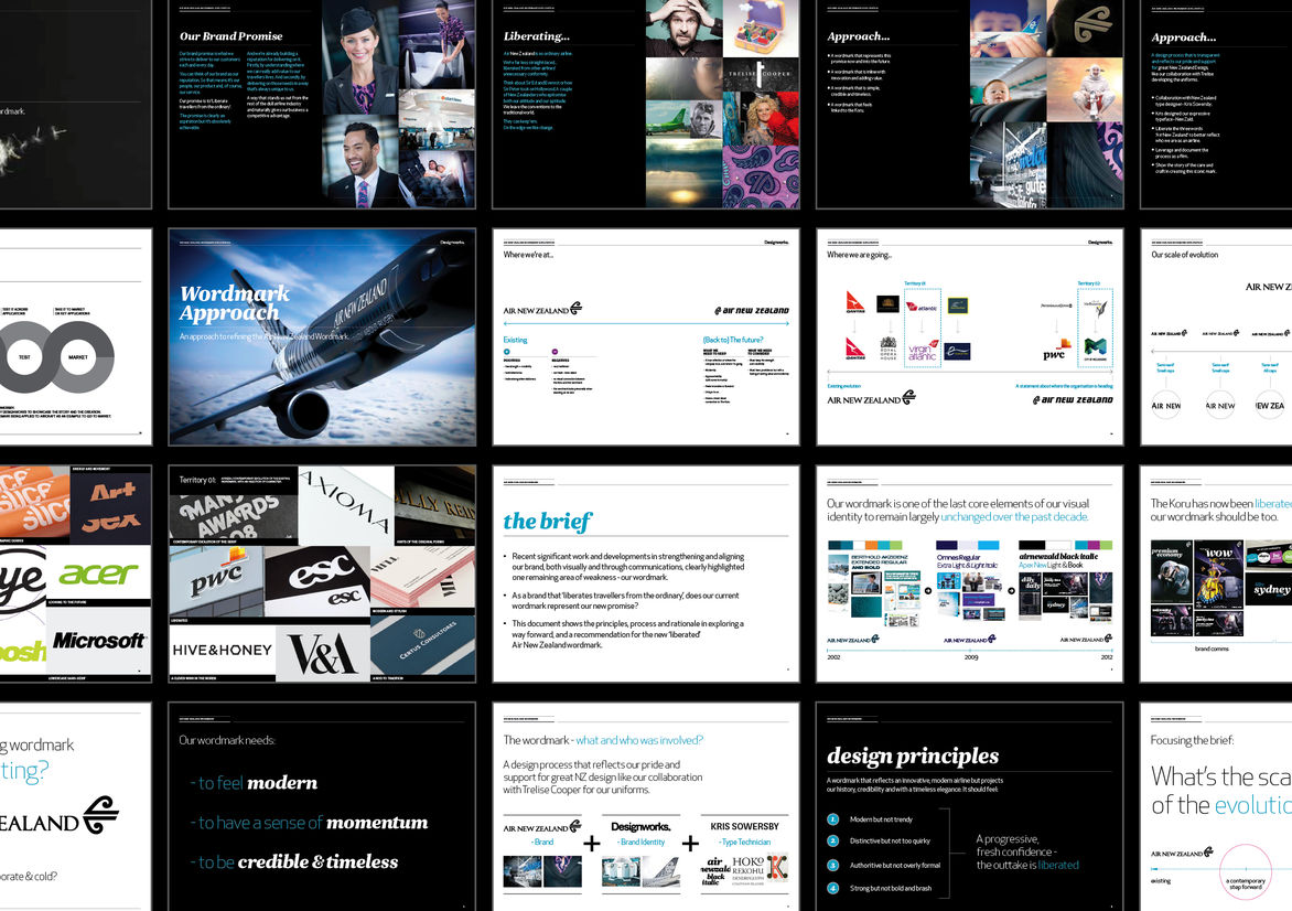 Graphic Business Communication Colour Award Graphics Design Communication Design Craft Editorial and Books Environmental Graphics Large Brand Identity Packaging Self Promotion Small Brand Identity Student & Academic Graphics Animation Digital Film Graphic Moving Image (archived 2025) Product Social Good Award Spatial Toitanga Value of Design Award User Experience Award (archived 2019) All categories Business Communication Colour Award Graphics Design Communication Design Craft Editorial and Books Environmental Graphics Large Brand Identity Packaging Self Promotion Small Brand Identity Student & Academic Graphics All years 2025 2024 2023 2022 2021 2020 2019 2018 2017 2016 2015 2014 2013 2012 2011 2010 Studio A-Z Designworks 183 Air New Zealand Wordmark 2013 Design Craft Credits Pou Auaha / Creative Directors Jef Wong, Hudson Smales Ringatoi Matua / Design Directors Nick Riley, Kris Sowersby Kaitautoko / Contributor Air NZ Design Team Client Air New Zealand