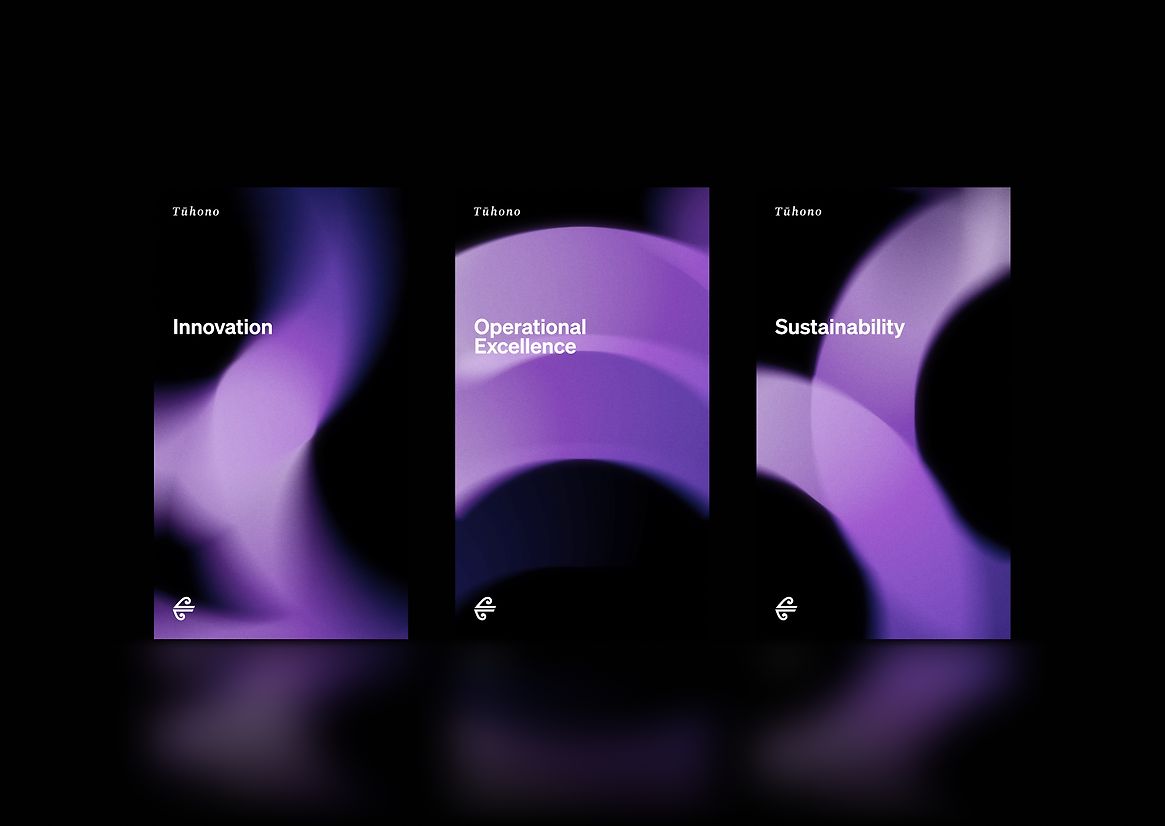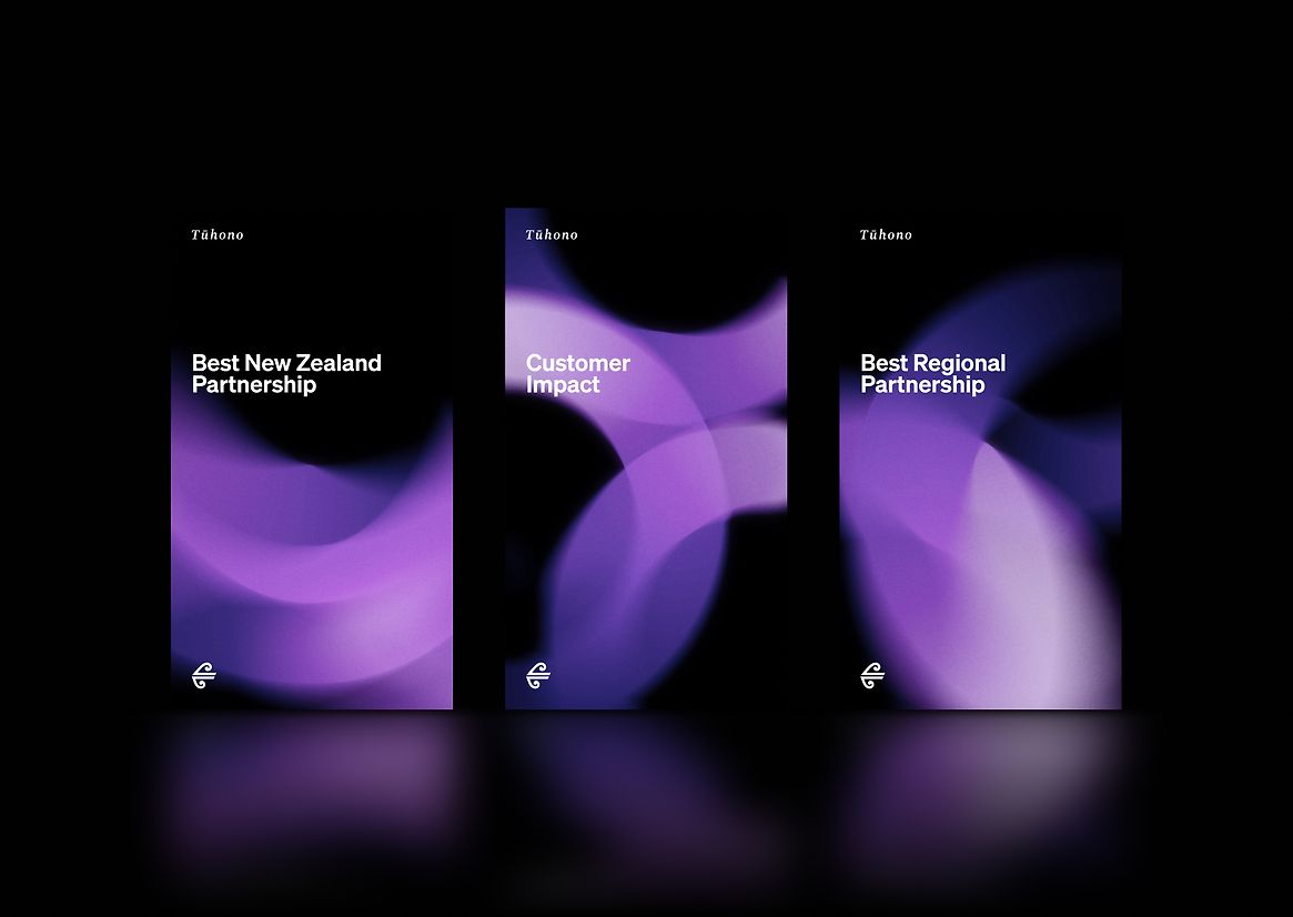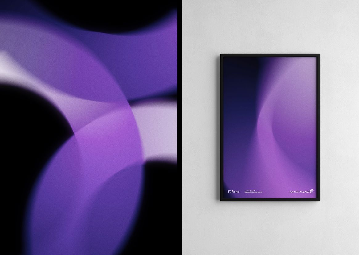 A comprehensive motion identity for Air New Zealand’s Tūhono Awards; awarded to Air New Zealand suppliers who produce work to an exceptional standard. The central piece of the Tūhono Award is designed to move in a circular fashion from its anchor point. The general form and movement of the award informs the behaviour of the motion graphics, which are cast in Air New Zealand's iconic hues of deep violet. Graphics merge and overlay with each other to reflect the collaborative nature of the Air New Zealand supplier community whilst evoking a sense of innovation and progression.