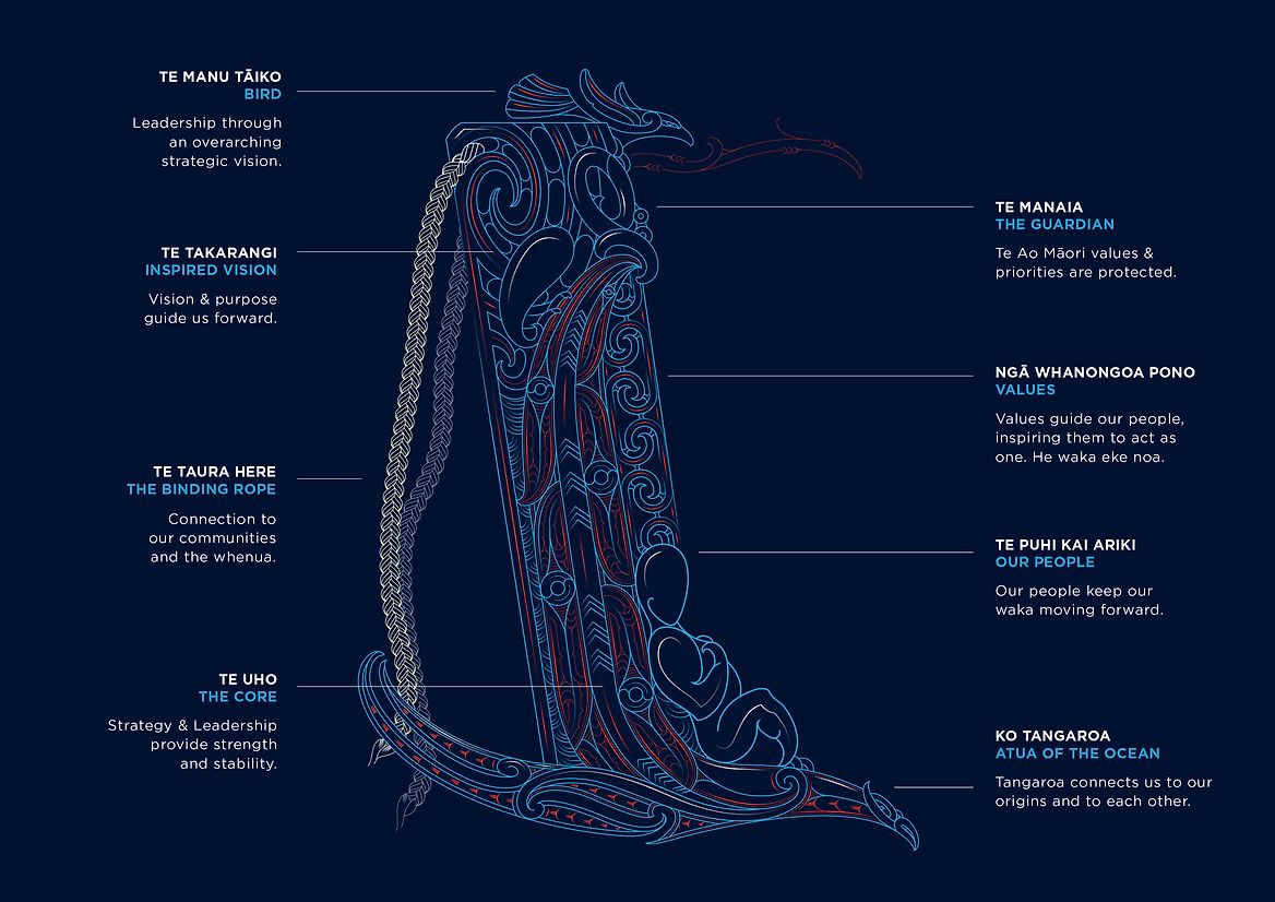 Te Taurapa is an expression of the strategy, vision, purpose and values of Auckland Transport. It stands to express their commitment to honour te ao Māori as they work with Tangata Whenua and diverse communities to create a thriving and connected Tāmaki Makaurau.