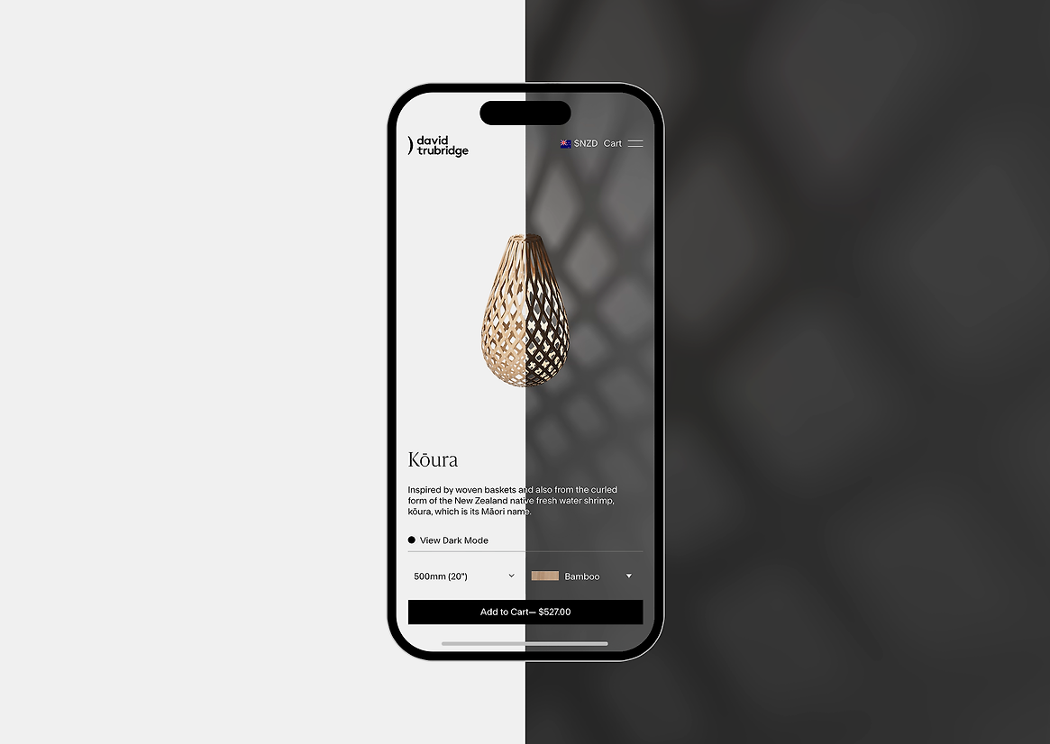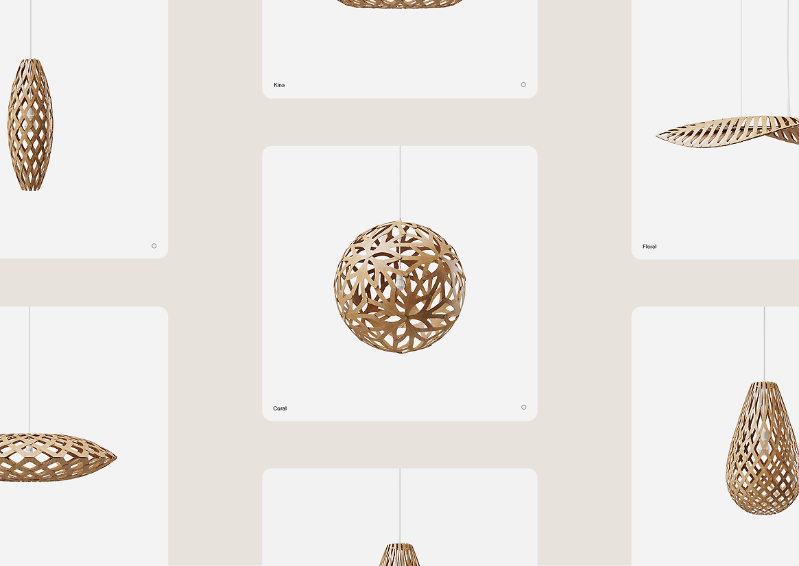David Trubridge’s sculptural lighting designs are renowned for their interplay of form, shadow, and nature-inspired geometry. However, translating the physical poetry of these pieces into a digital space posed a unique challenge: how do you recreate the emotional effect of light, its mood, movement, and atmosphere through a screen?