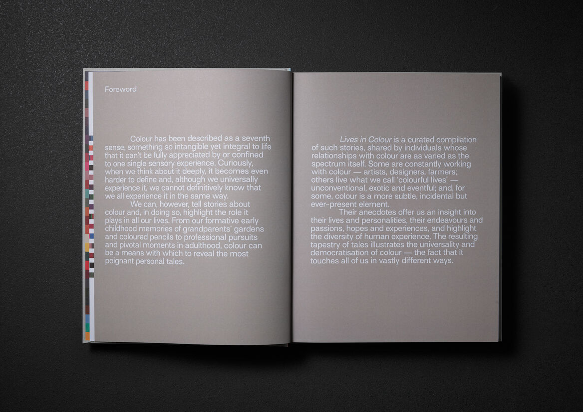 A deeply collaborative process with the publisher, the Lives in Colour book features a diverse range of people from different backgrounds and industries all revealing their personal relationship with the colour in their world.