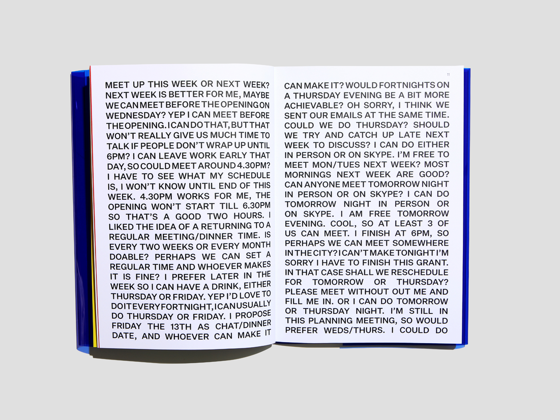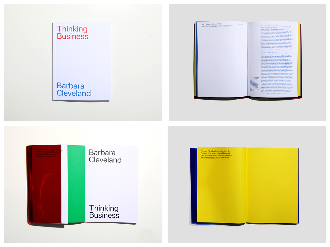 Barbara Cleveland is a female Australian artist collective working on Gadigal land. The collective took its name from a mythic feminist performance artist from the margins of Australian art history. The book’s publication coincided with Barbara Cleveland’s retrospective touring exhibition. The dust jackets are made from blue and red photographic gels, a material found in the collective’s output. They redact their corresponding coloured type on the cover, making a comment about how women can sometimes be unseen.