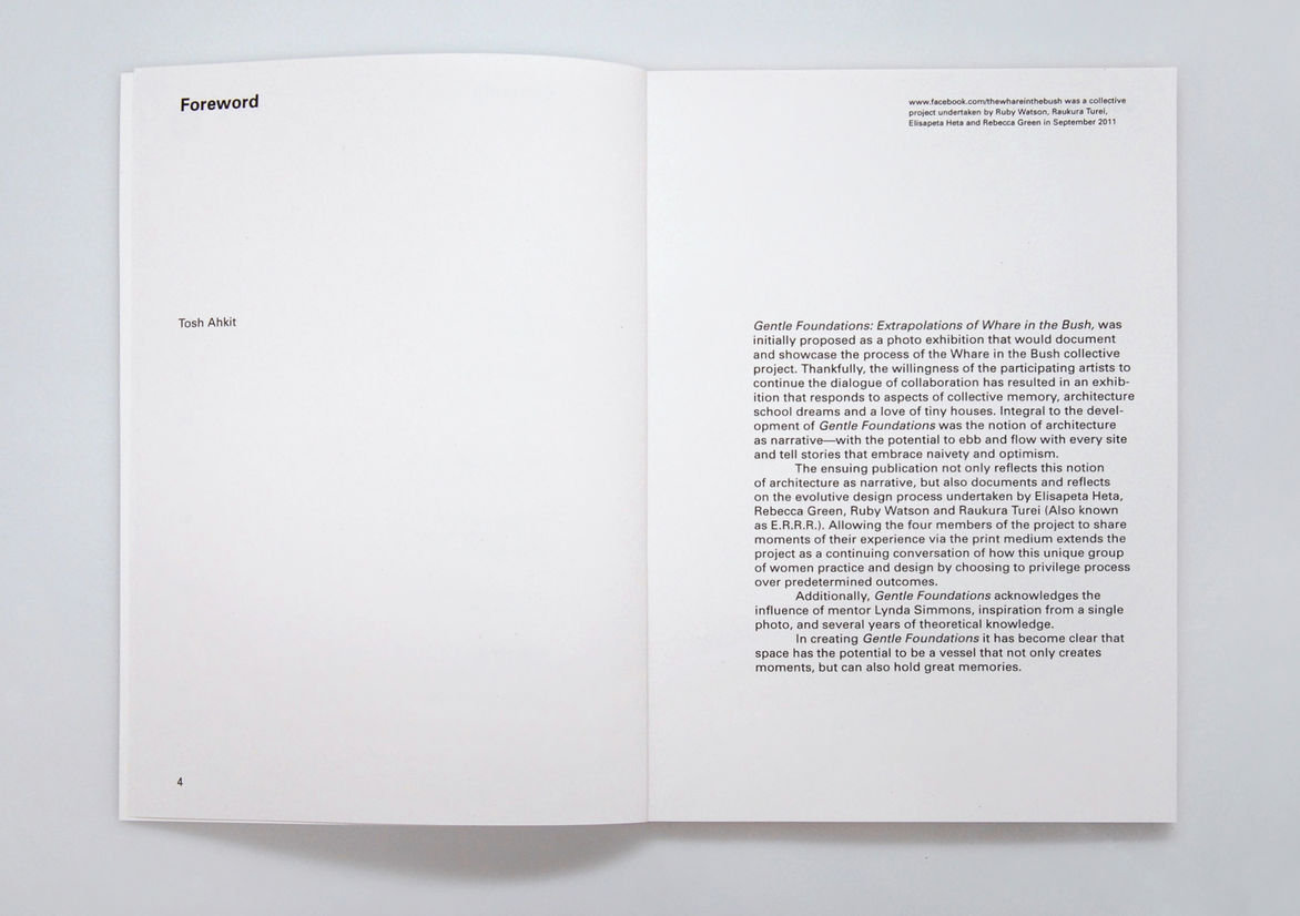 Graphic Business Communication Colour Award Graphics Design Communication Design Craft Editorial and Books Environmental Graphics Large Brand Identity Packaging Self Promotion Small Brand Identity Student & Academic Graphics Animation Digital Film Graphic Moving Image (archived 2025) Product Social Good Award Spatial Toitanga Value of Design Award User Experience Award (archived 2019) All categories Business Communication Colour Award Graphics Design Communication Design Craft Editorial and Books Environmental Graphics Large Brand Identity Packaging Self Promotion Small Brand Identity Student & Academic Graphics All years 2025 2024 2023 2022 2021 2020 2019 2018 2017 2016 2015 2014 2013 2012 2011 2010 Studio A-Z Index 16 Gentle Foundations 2015 Editorial and Books Credits Pou Auaha / Creative Director Amy Yalland Ringatoi Matua / Design Director Amy Yalland Client Architecture + Women NZ