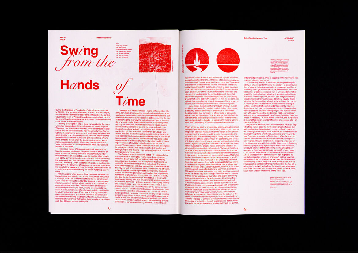 Based in Aotearoa, each issue of Pan includes a selection of content from both local and international contributors. The aim of the publication is to explore multiple critical perspectives on life under quarantine, and how life has been altered through the pandemic experience.