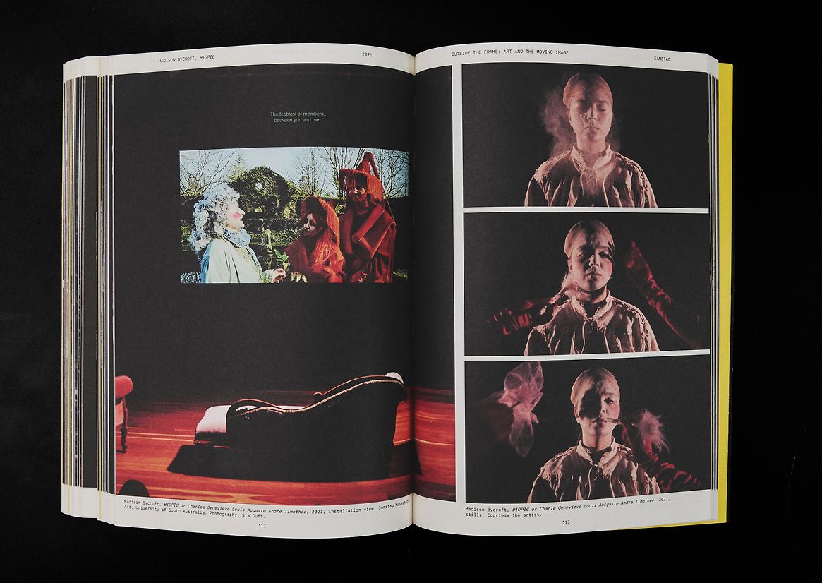 The book at 384 pages is a collaborative effort between Perimeter Editions, Samstag Museum of Art, the University of South Australia, and the Australian Centre for the Moving Image (ACMI), Outside the Frame serves as both a comprehensive reference and a critical exploration of moving image art and its institutional frameworks.