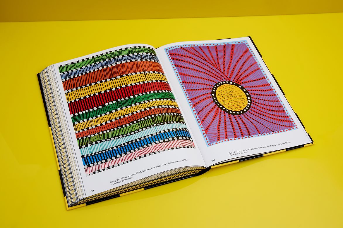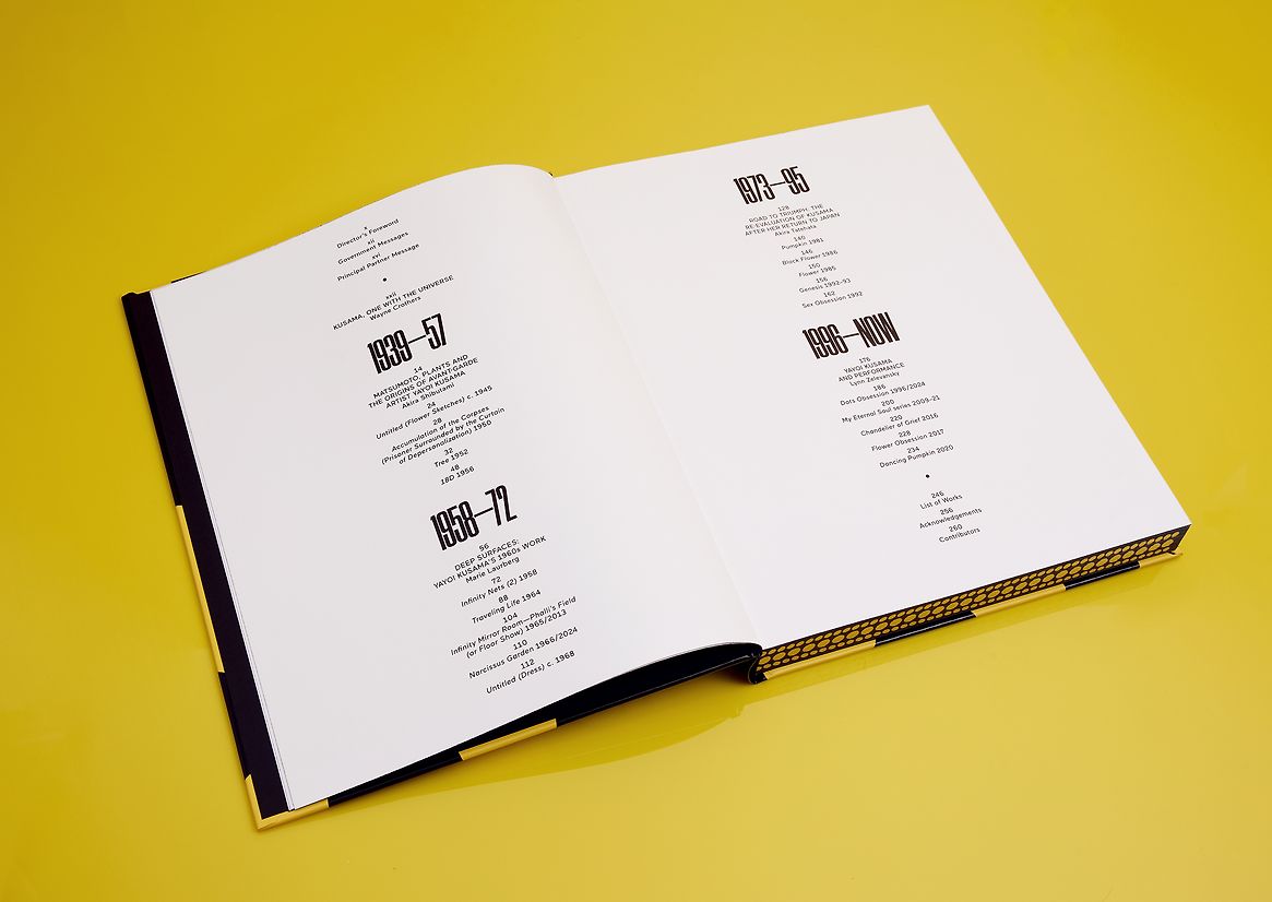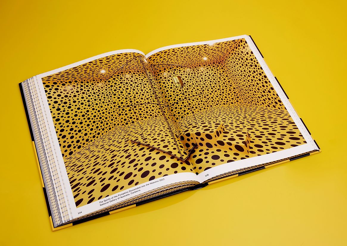 The large-format hardcover is inspired by Kusama’s sculpture ‘Dancing Pumpkin’, with the artist’s signature polka dots wrapping around the entire book block – vibrant, playful and unmistakably Kusama.