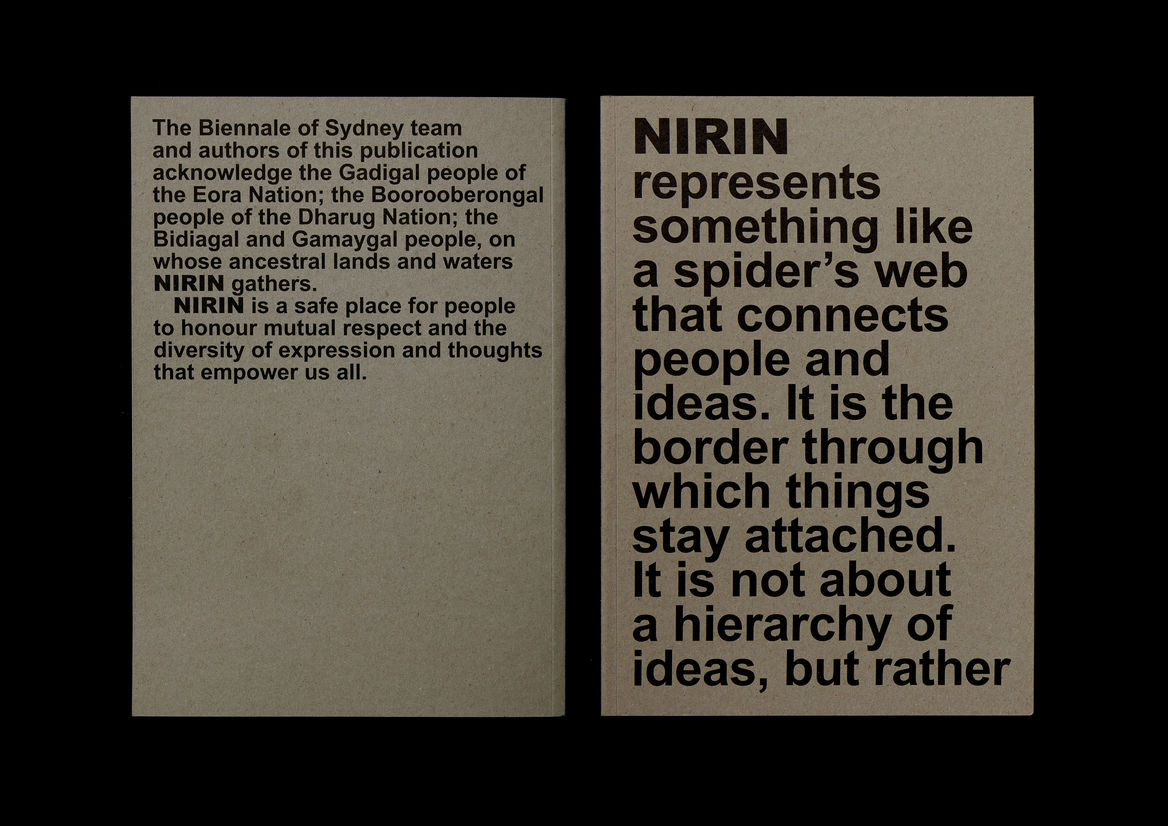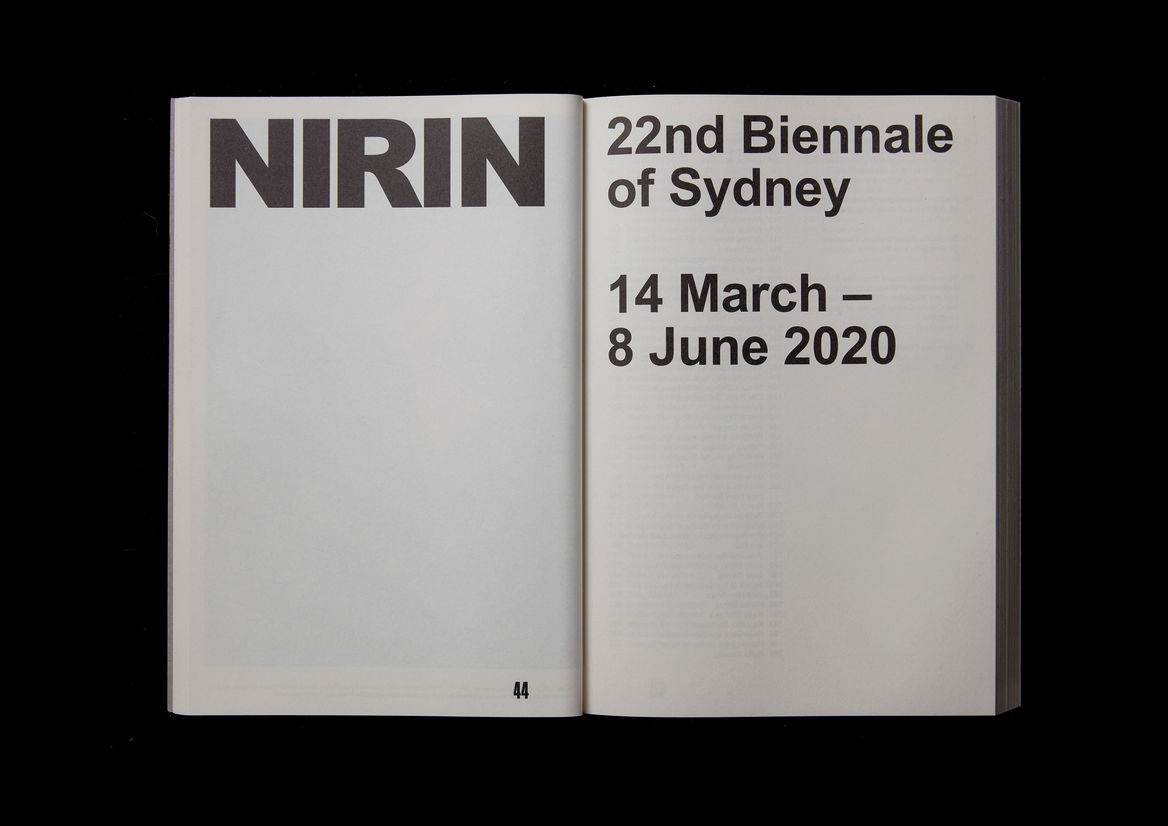 Graphic Business Communication Colour Award Graphics Design Communication Design Craft Editorial and Books Environmental Graphics Large Brand Identity Packaging Self Promotion Small Brand Identity Student & Academic Graphics Animation Digital Film Graphic Moving Image (archived 2025) Product Social Good Award Spatial Toitanga Value of Design Award User Experience Award (archived 2019) All categories Business Communication Colour Award Graphics Design Communication Design Craft Editorial and Books Environmental Graphics Large Brand Identity Packaging Self Promotion Small Brand Identity Student & Academic Graphics All years 2025 2024 2023 2022 2021 2020 2019 2018 2017 2016 2015 2014 2013 2012 2011 2010 Studio A-Z Stuart Geddes 27 Trent Walter Kim Mumm Hansen NIRIN 2020 Editorial and Books Credits Pou Auaha / Creative Directors Stuart Geddes, Trent Walter, Kim Mumm Hansen Client Biennale of Sydney