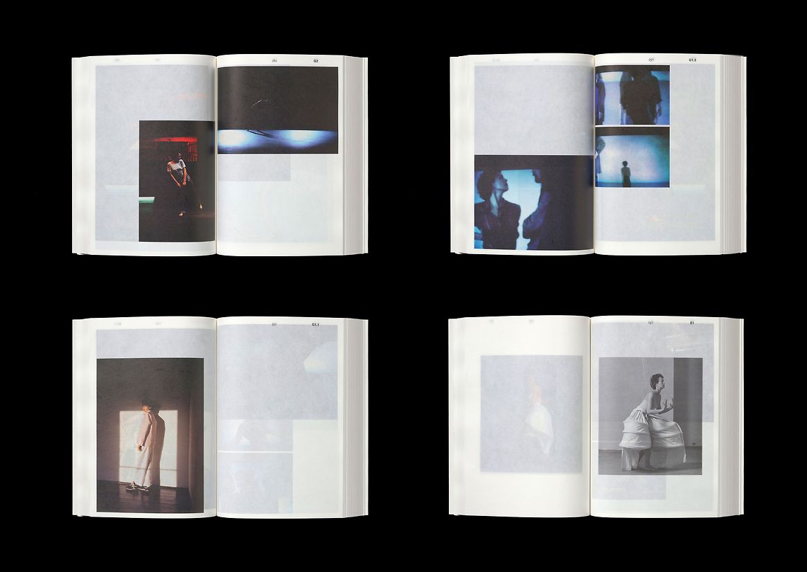 ... Under this thematic regime, the reader lands in a flow of images that allows the works to blend and morph (with the help of the light paper) into each other. Lasica’s figure, at times joined by other dancers, repeats throughout, travelling through the sequence of images. Within this flow, the reader is able to construct their own version of the archive, and thus of Lasica’s work...