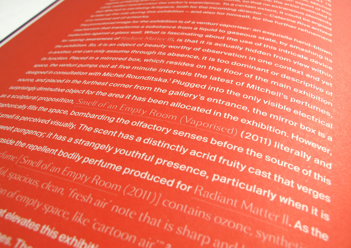 Graphic Business Communication Colour Award Graphics Design Communication Design Craft Editorial and Books Environmental Graphics Large Brand Identity Packaging Self Promotion Small Brand Identity Student & Academic Graphics Animation Digital Film Graphic Moving Image (archived 2025) Product Social Good Award Spatial Toitanga Value of Design Award User Experience Award (archived 2019) All categories Business Communication Colour Award Graphics Design Communication Design Craft Editorial and Books Environmental Graphics Large Brand Identity Packaging Self Promotion Small Brand Identity Student & Academic Graphics All years 2025 2024 2023 2022 2021 2020 2019 2018 2017 2016 2015 2014 2013 2012 2011 2010 Studio A-Z Tana Mitchell RADIANT MATTER I / II / III 2012 Editorial and Books Credits Ringatoi Matua / Design Director TANA MITCHELL Ngā Kaimahi / Team Member TANA MITCHELL Client Artspace / DAAD / Dunedin Public Art Gallery / Govett-Brewster Art Gallery