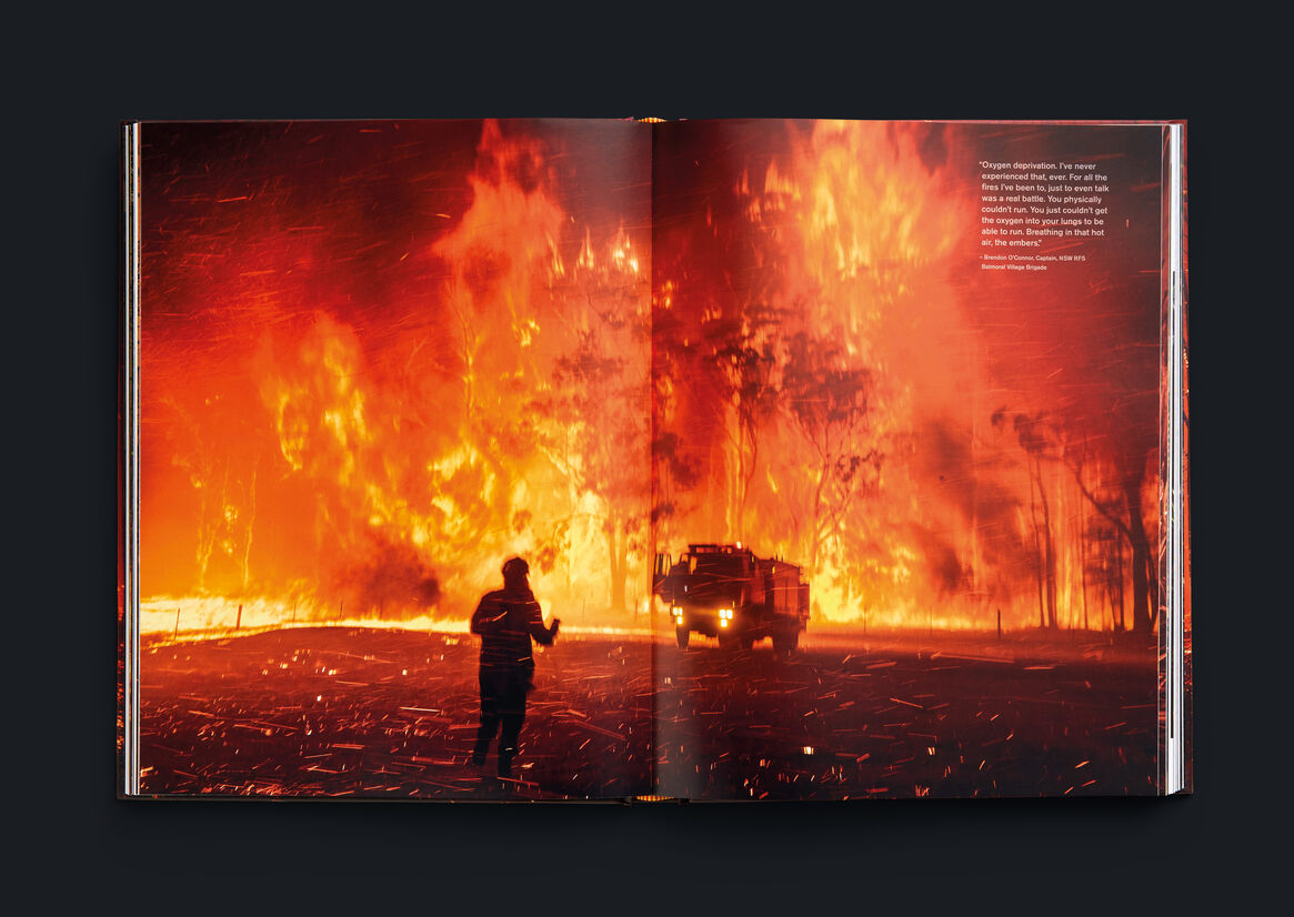 The book A FIRE INSIDE – The power of the human help reflex – documents the events of the Black Summer bushfires and forms one part in an integrated recruitment campaign for the Australian Resilience Corps. It’s about the nature and resilience of the Australian people. The devastation was there for all to see. What was harder to capture was the way every Australian responded, a nation forged by fire and defined by help.