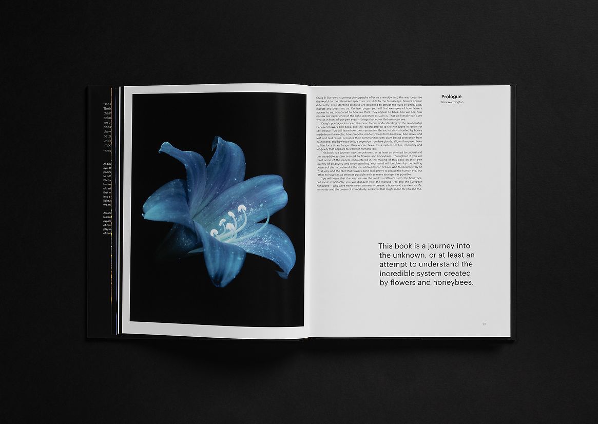 Honeybees see in UV. It was this revelation that led us to the collaboration with photographer Craig P Burrows and ultimately provided a unique and distinctive visual language and perspective for the book.