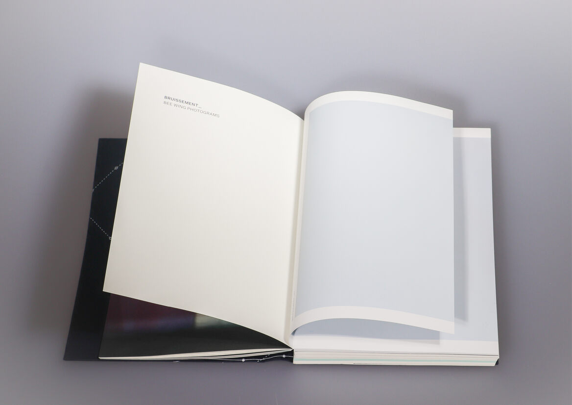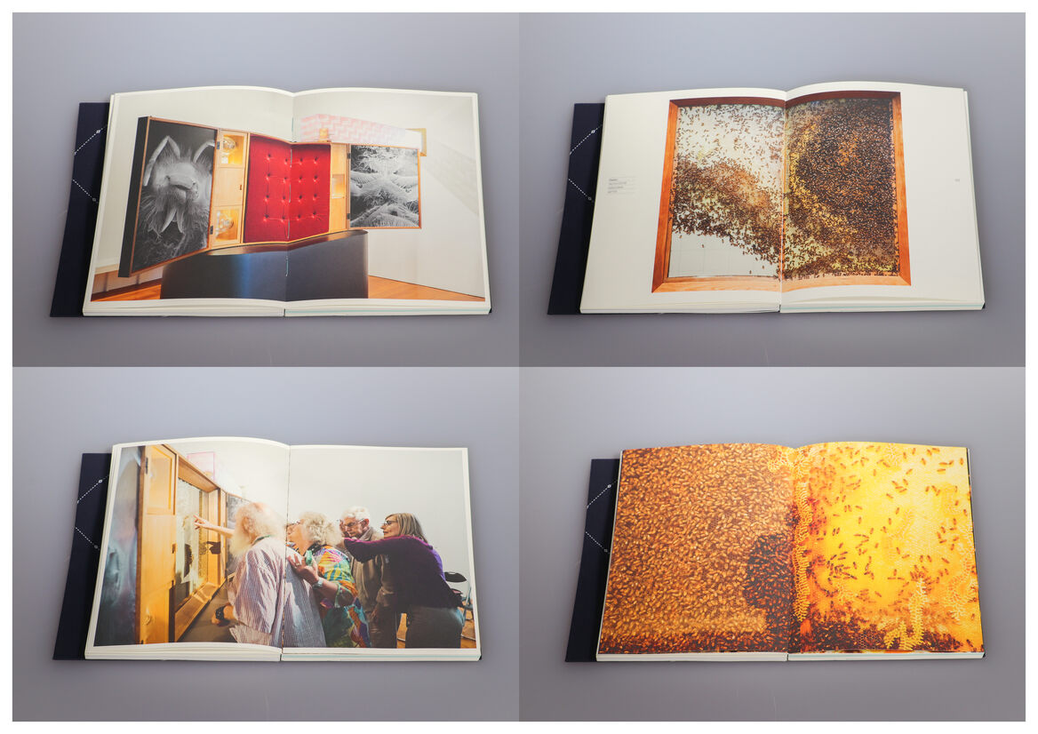 The visual elements, drawing on a decade of photographic material, cohabit with a collection of texts while retaining a sense of cohesion. Collected writings about bees, educational projects, correspondence between and interviews with beekeepers, and a scientific essay all find their place within the overall work alongside ten years’ photographic oeuvre of bees in myriad contexts and formats.
