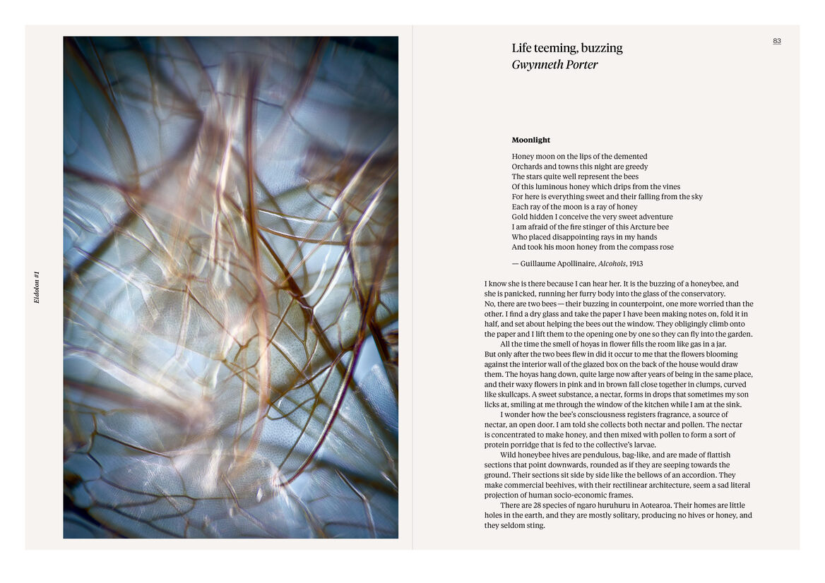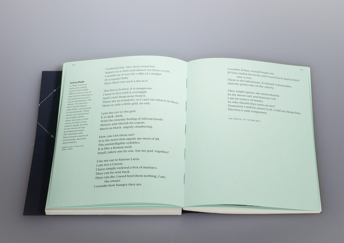 The format of the book is relatively small for its scope, akin to a compendium rather than the trophy coffee-table book. Its intent is to reflect the experience of ‘conversatio’ and give the feeling of an intimate conversation on a range of bee-related topics. This inspires more than a casual perusal, instead prompting a deeper, more considered engagement with the text and images, and inspiring a deeper reflection.