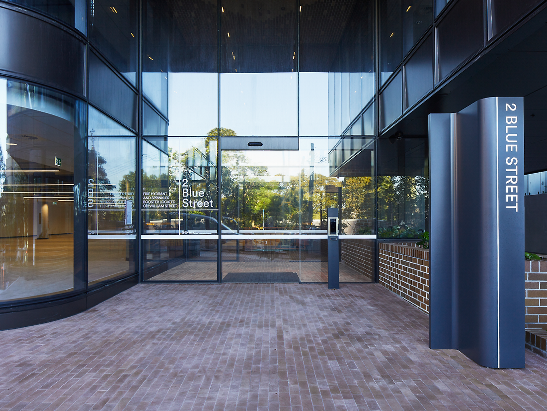 Blue & William is a bespoke midscale commercial office building located in the heart of North Sydney CBD. With increasing amenity to re-envision the work-base lifestyle, the brief was to undertake strategies to address various aspects of the building, such as circulation areas, building address, End of Trip facilities, amenities, statutory signage, and place-making graphics.
