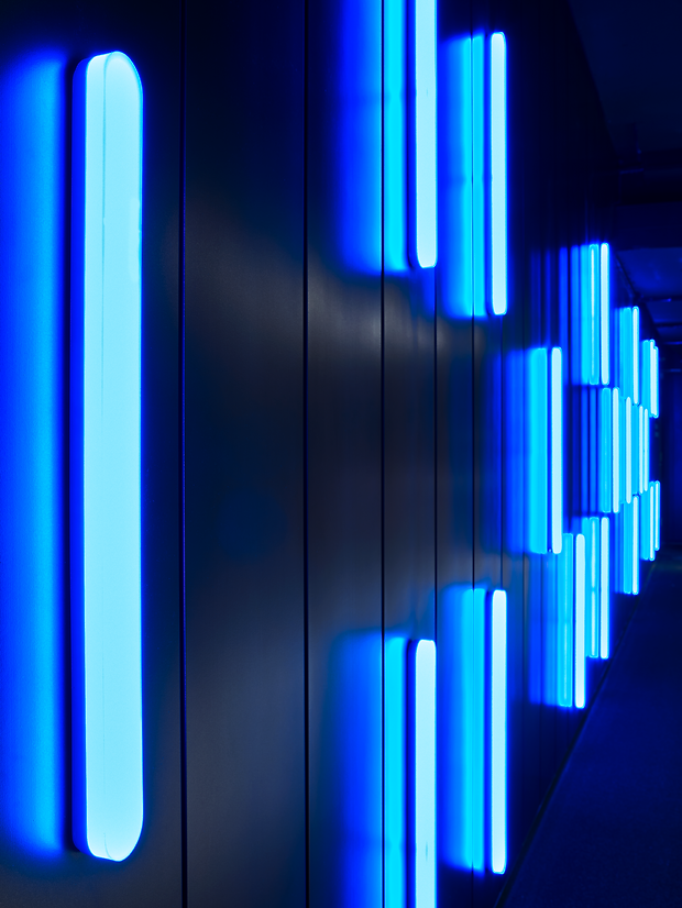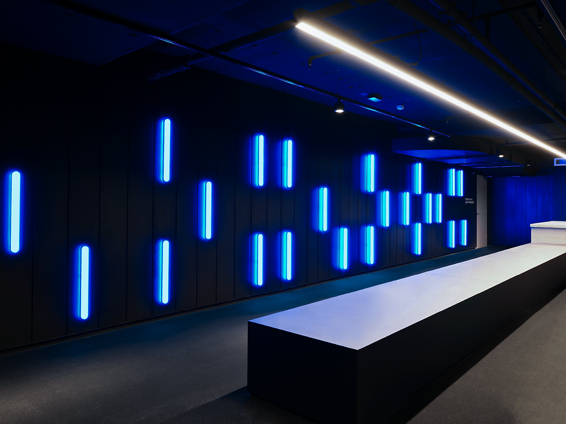 With wellness at the forefront of the building's design, special attention was placed towards the End of Trip areas as a key destination. Leveraging colour in combination with the custom led graphic, this intervention injects a stimulating and energetic atmosphere.
