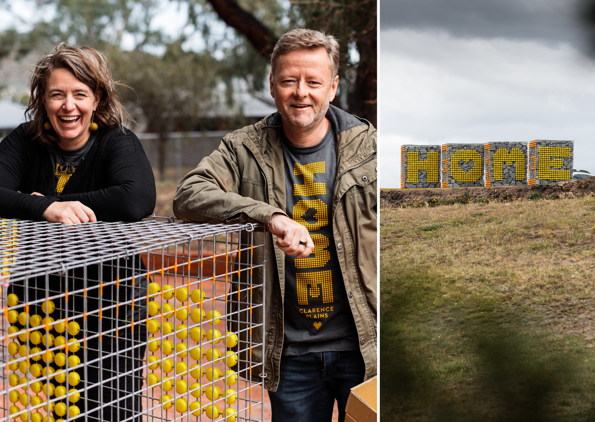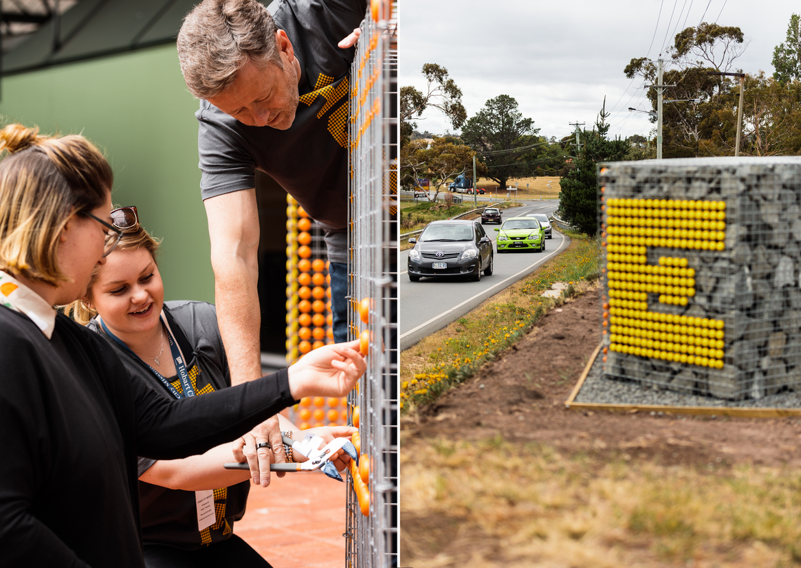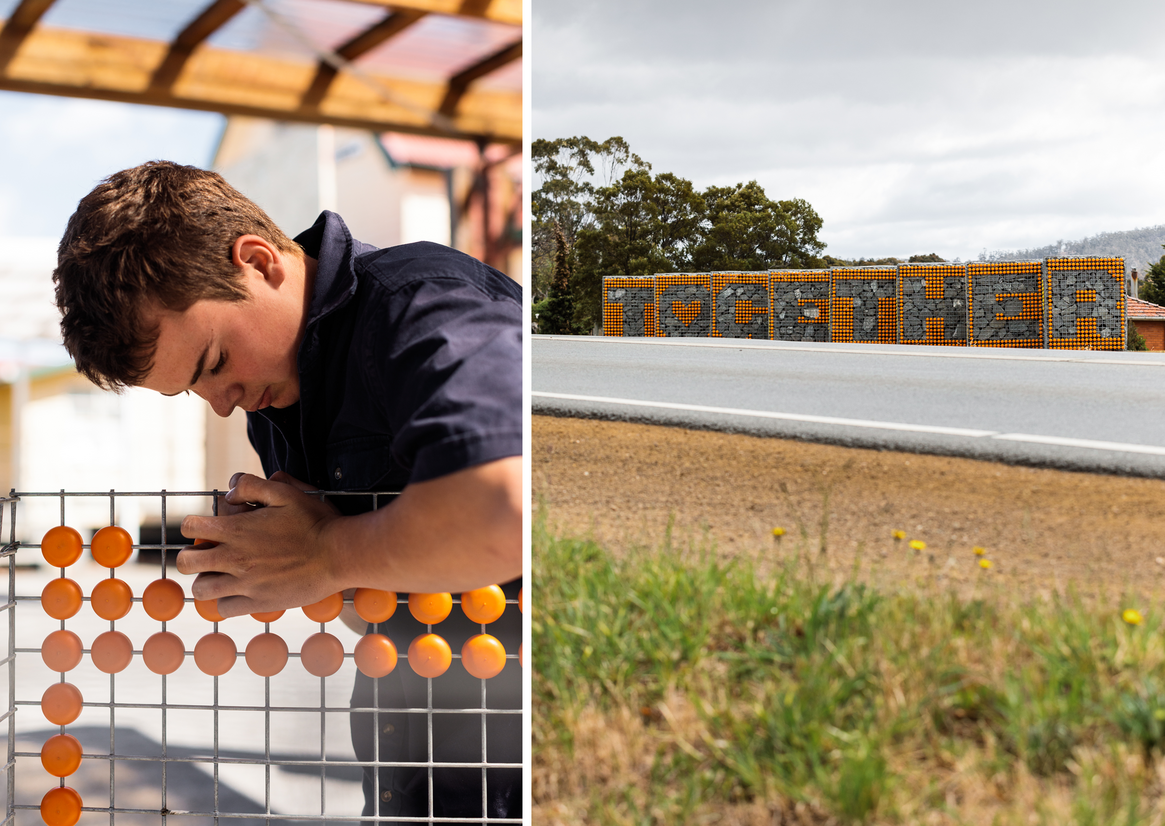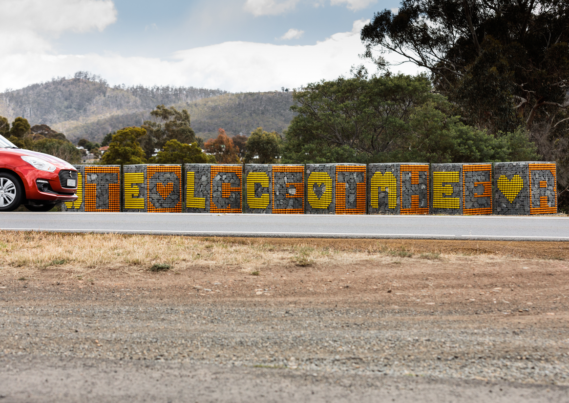 By creating a system that uses an off-the-shelf gridded mesh, and ordering thousands of extra DeDots, we’ve set the local community up with a replicable design. There are plans already to install a further 2 words, using the typographical alphabet and words gathered during the engagement phase. Not only does the work give scope to exist in external installations with this physical system, it can also be used as a graphic system for merchandise, collateral and promotional material, giving Clarence Plains a distinct, confident visual voice.