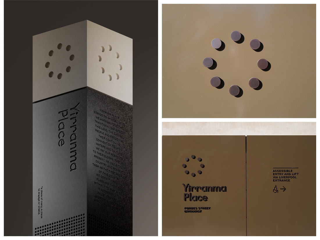 Yirranma Place is a place for growth; a place for regeneration, a place for good and a place to inspire others to do good. Being a heritage building, signage interventions were minimal and sympathetic to the building’s history (aged brass, granite and sandstone).