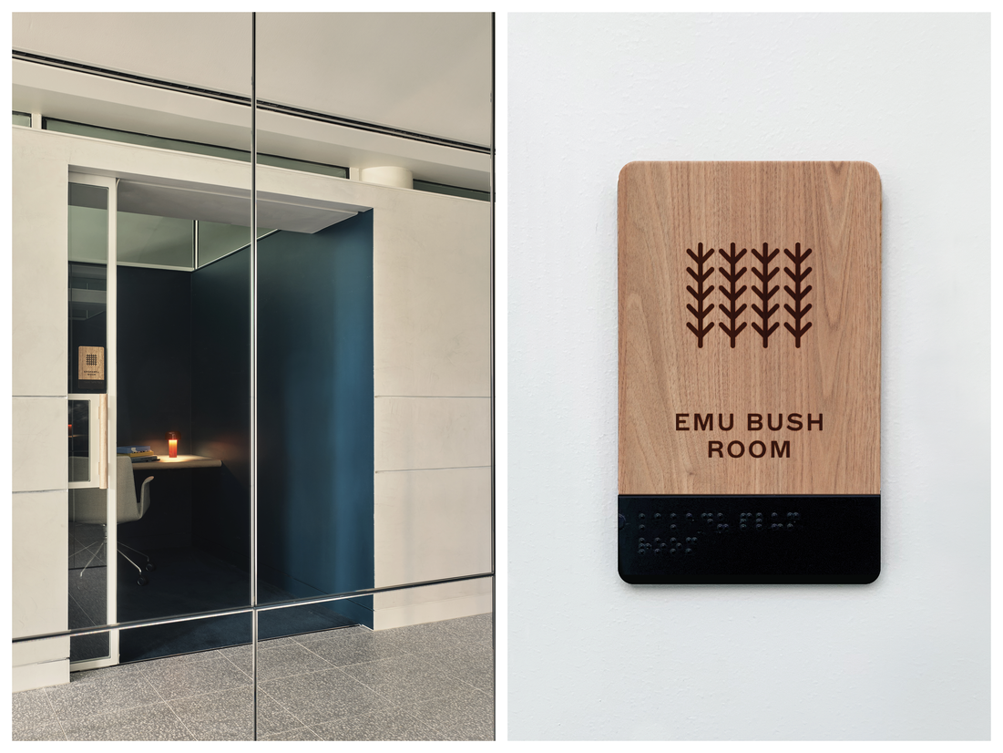 The influence of First Nation’s peoples extends throughout the building. The naming system for the rooms was intended to instil a sense of layered identities, histories and memories. Travelling through the building, visitors encounter art and welcoming stories of place. The entry proudly features an 8m acknowledgement of the traditional owners, the Gadigal people.