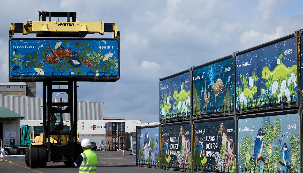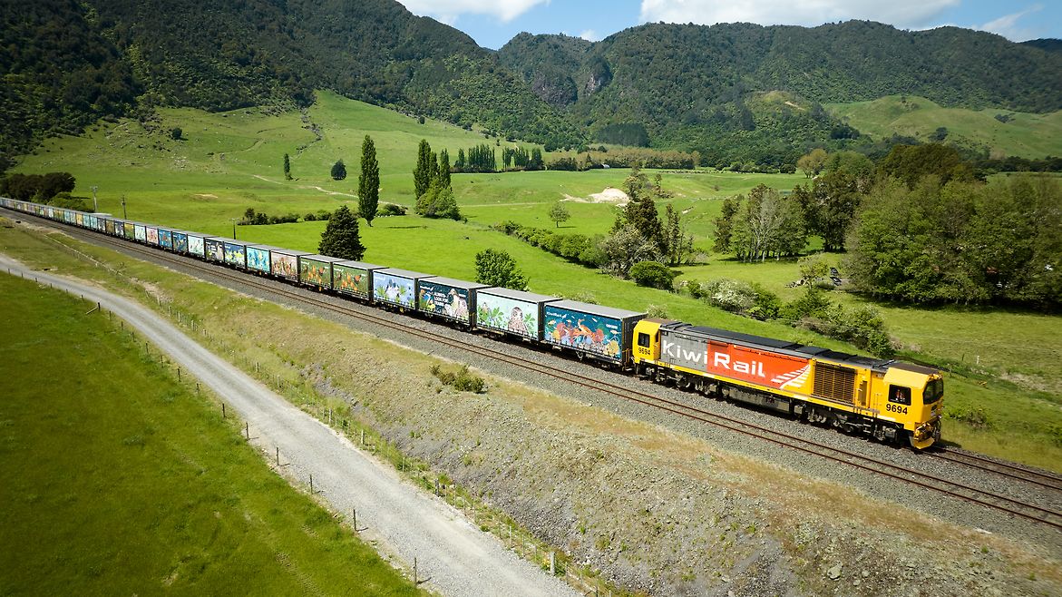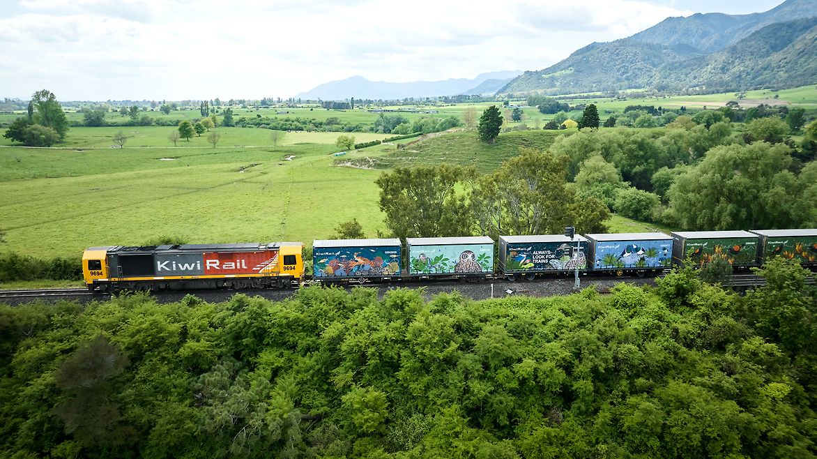 The colourful curtain-siders have entered service and are turning heads around New Zealand. They are stunning and uniquely New Zealand, while highlighting te taiao (the natural world) and the environmental benefits of rail. This initiative delivers a strong visual message that speaks to our commitment to sustainability.