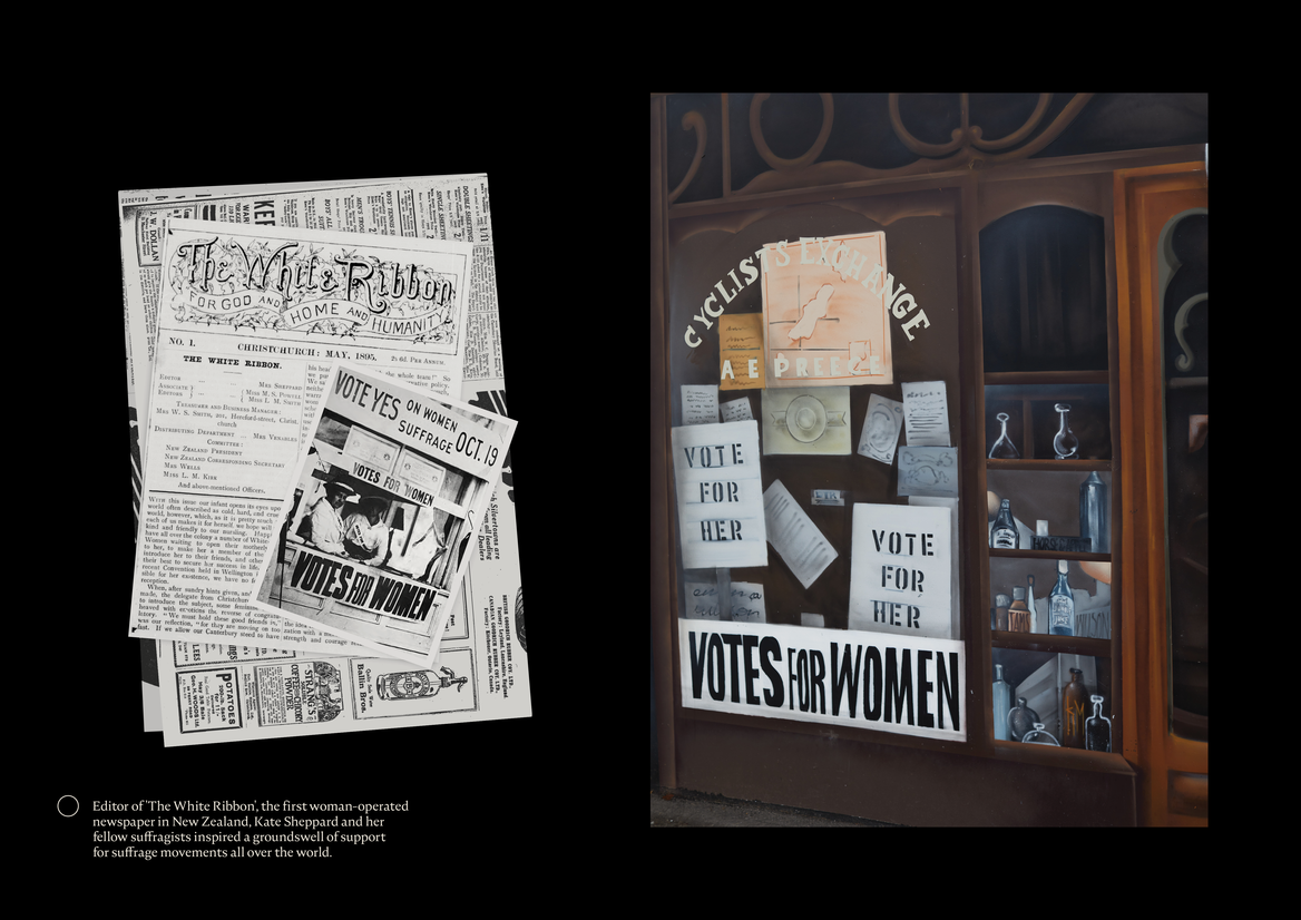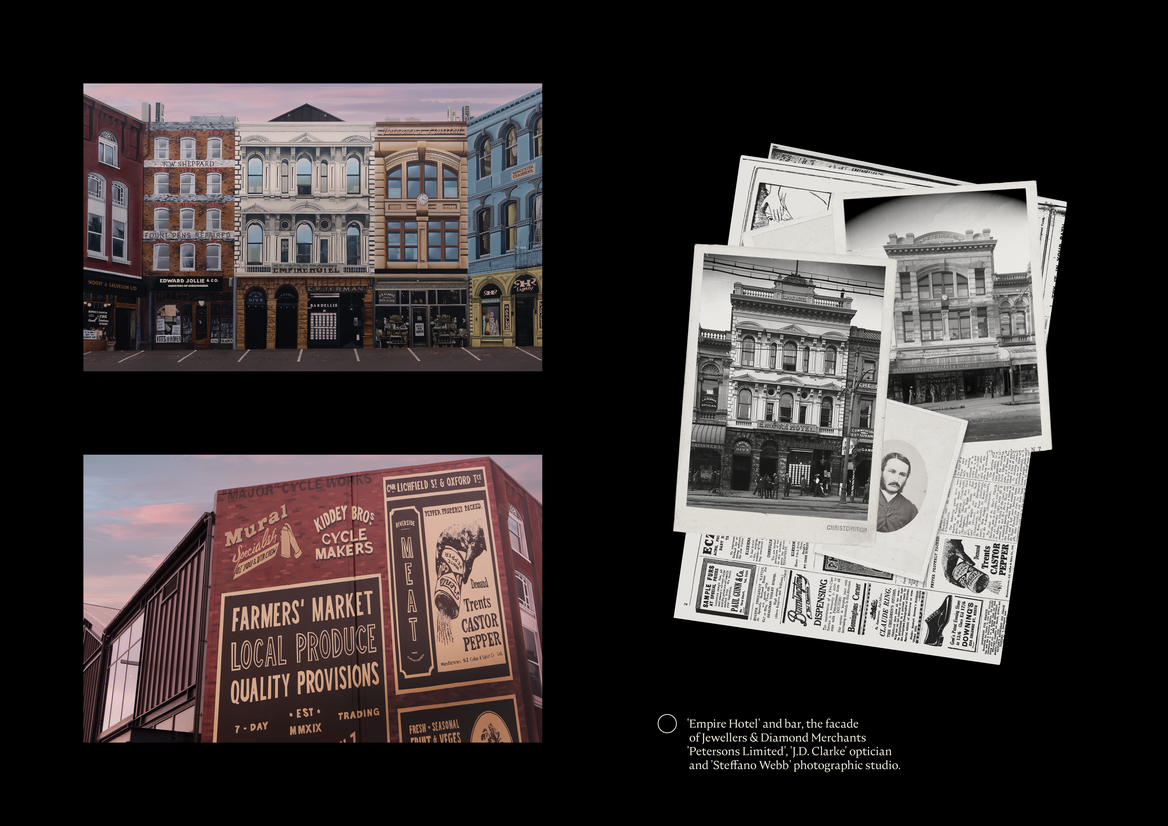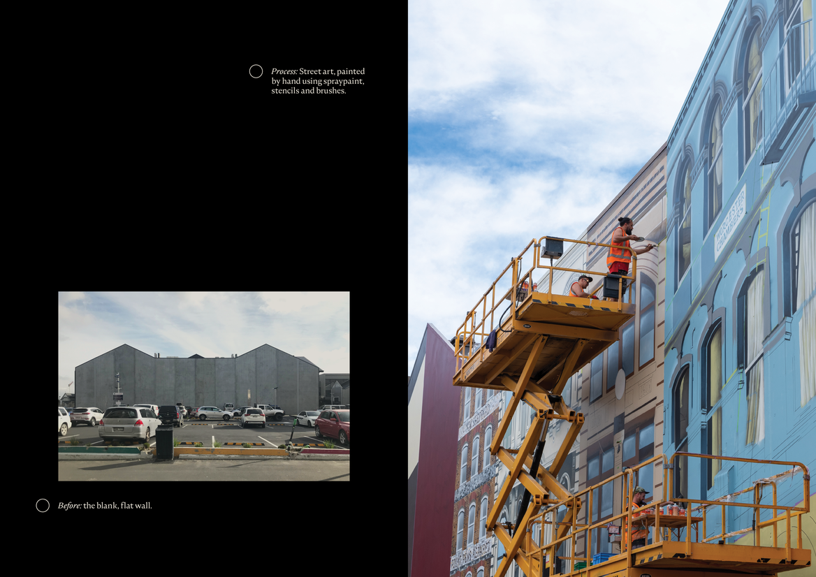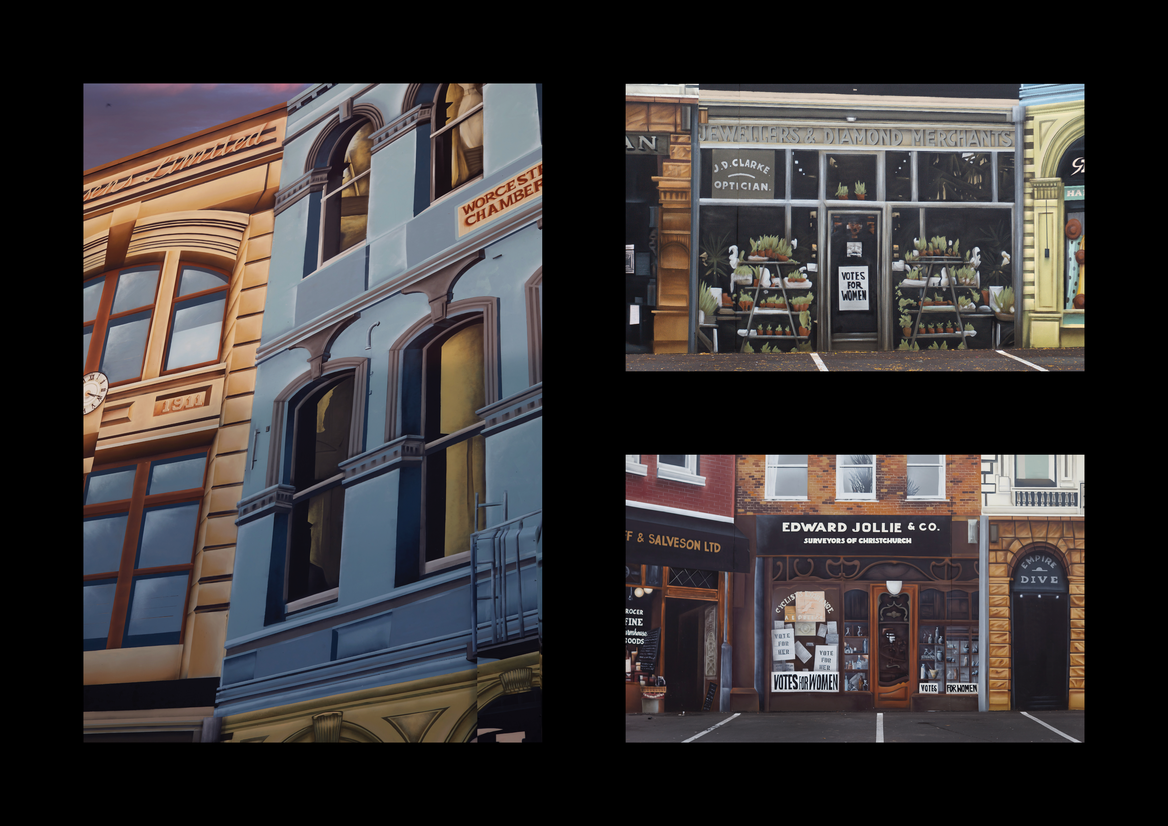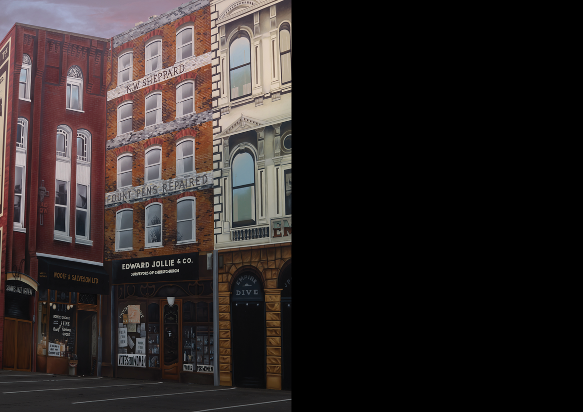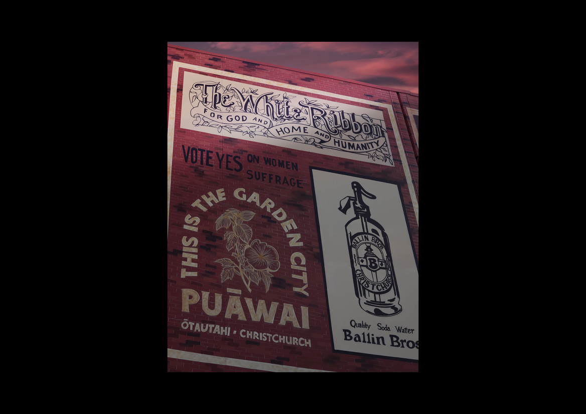 The wall was brought to life with key references to our central city heritage and architecture, remembering defining moments including Kate Sheppard and the broader women's suffrage movement (which started in Ōtautahi Christchurch). The buildings featured in the mural were once located in and around the site but were destroyed in the earthquakes, and the businesses mentioned on the shop fronts and walls each take their place in the memories of residents and visitors alike.