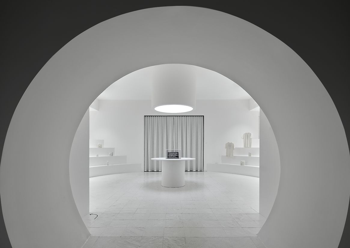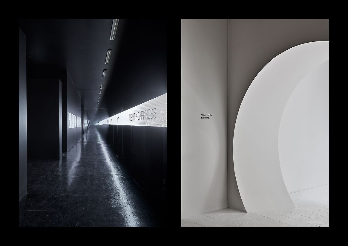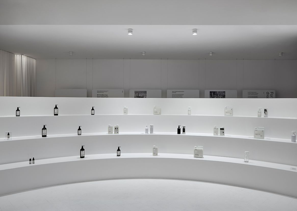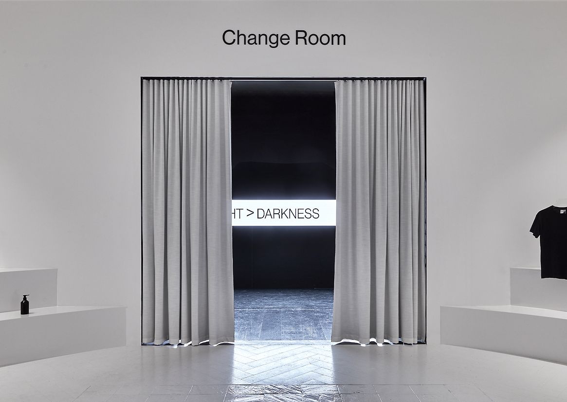 The main space employed subtle lighting and a white palette, highlighting products and emphasising a human-centric approach. The circular amphitheatre layout served dual purposes: showcasing products and hosting events, reinforcing the store’s community hub role. The ‘Change Room’ at the rear contrasted with its dark, futuristic design and continuous LED screen displaying typographic and infographic content, provoking thought and engagement. Secondary galleries with suspended panels, soft lighting, and ambient soundscapes created a cohesive and immersive environment.