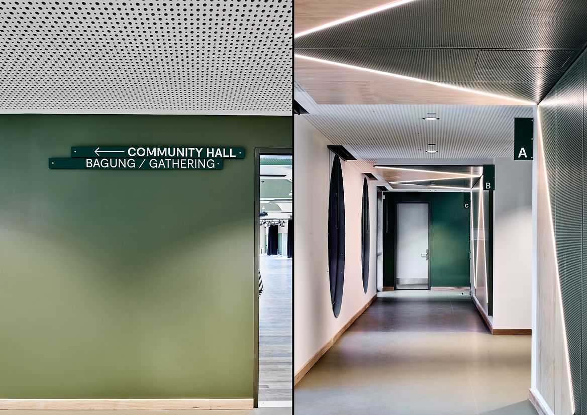 Using the Wurundjeri Woi wurrung language and English translations to describe the function of each space embeds subtle learning opportunities and contributes to a culturally safe and welcoming experience.