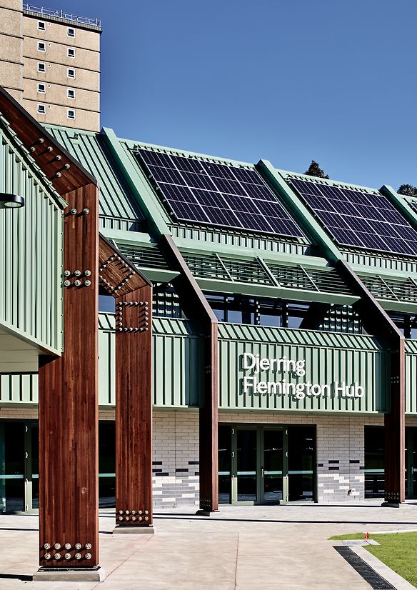 Djerring Flemington Hub is located on Wurundjeri Country in Melbourne, Australia. In Woi wurrung language, Djerring (pronounced: jerr-ring) means ‘together’. The new facility functions as the heart of a diverse community – it is a connector and meeting place that caters to the needs of people across generations and geological, cultural and socio-economic backgrounds. Djerring Flemington Hub facilitates classes, programmes, community events and provides creative, consultation and study spaces.