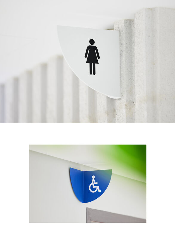 The subterranean space required a bright and optimistic brand overlay, to help welcome new users into the amenity. To help create a space alive with activity, the design of the environmental branding looked to the world of cycling for inspiration. The three major professional road races - the Tour de France, Giro d'Italia, and Vuelta a España - are known together as the ‘Grand Tours’, and these became the key concept for the scheme. Super-graphics were designed to relate to the visual language of cycling, with patterning and colour palettes referencing the athletes’ jerseys. Further graphics and iconography also allude to the different terrains that the races cover – by naming the gruelling mountain peaks and depicting the rolling countryside.