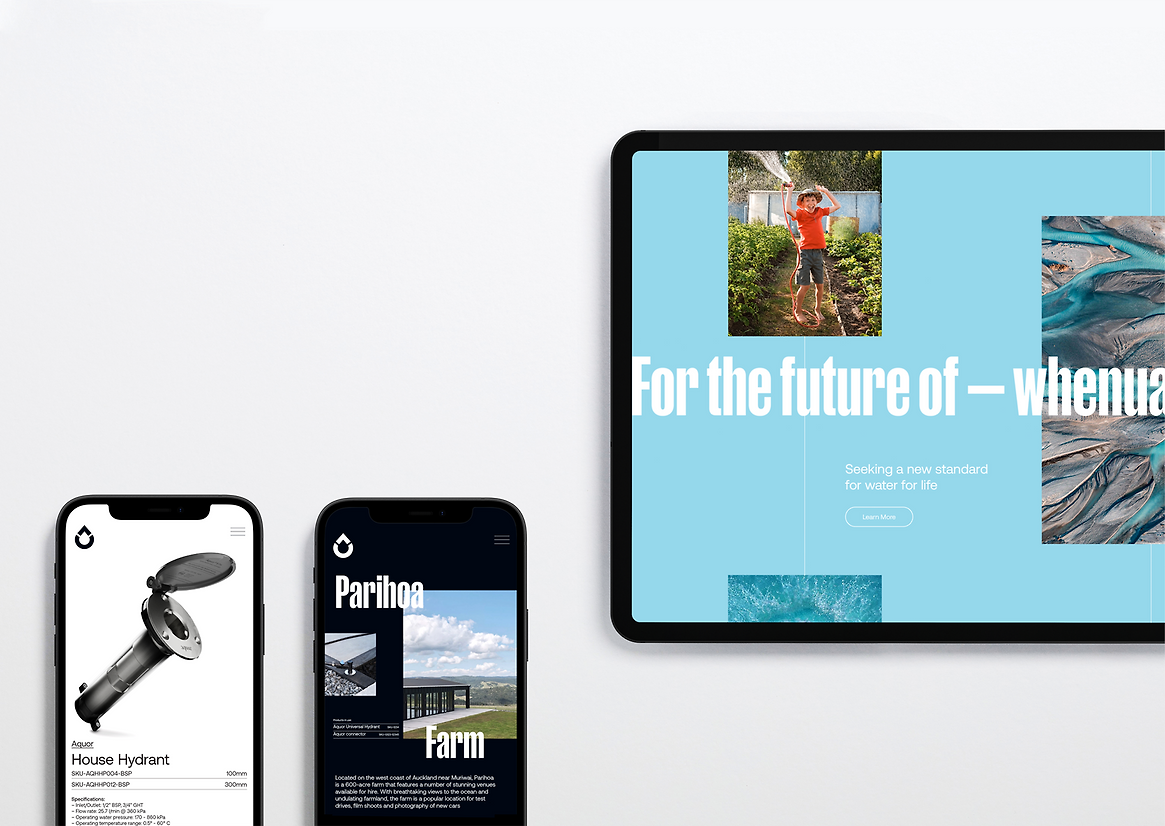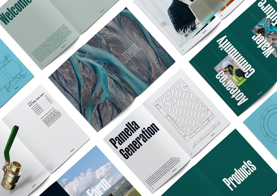 The new strategic direction, “Care for Quality, Water for Life,” formed the inspiration for the resulting graphic system which reflects a contemporary New Zealand company valuing customer expertise and technical innovation. 3D rendering techniques were used to elevate unremarkable products into sophisticated pieces of technology at the cutting edge of community infrastructure and health.