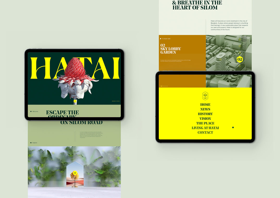 DesignStudio APAC, were engaged to develop the name, brand strategy, identity system, digital experience and marketing tools to help launch Hatai to staff, public and investors as it began the nearly 4 year demolition and site build.