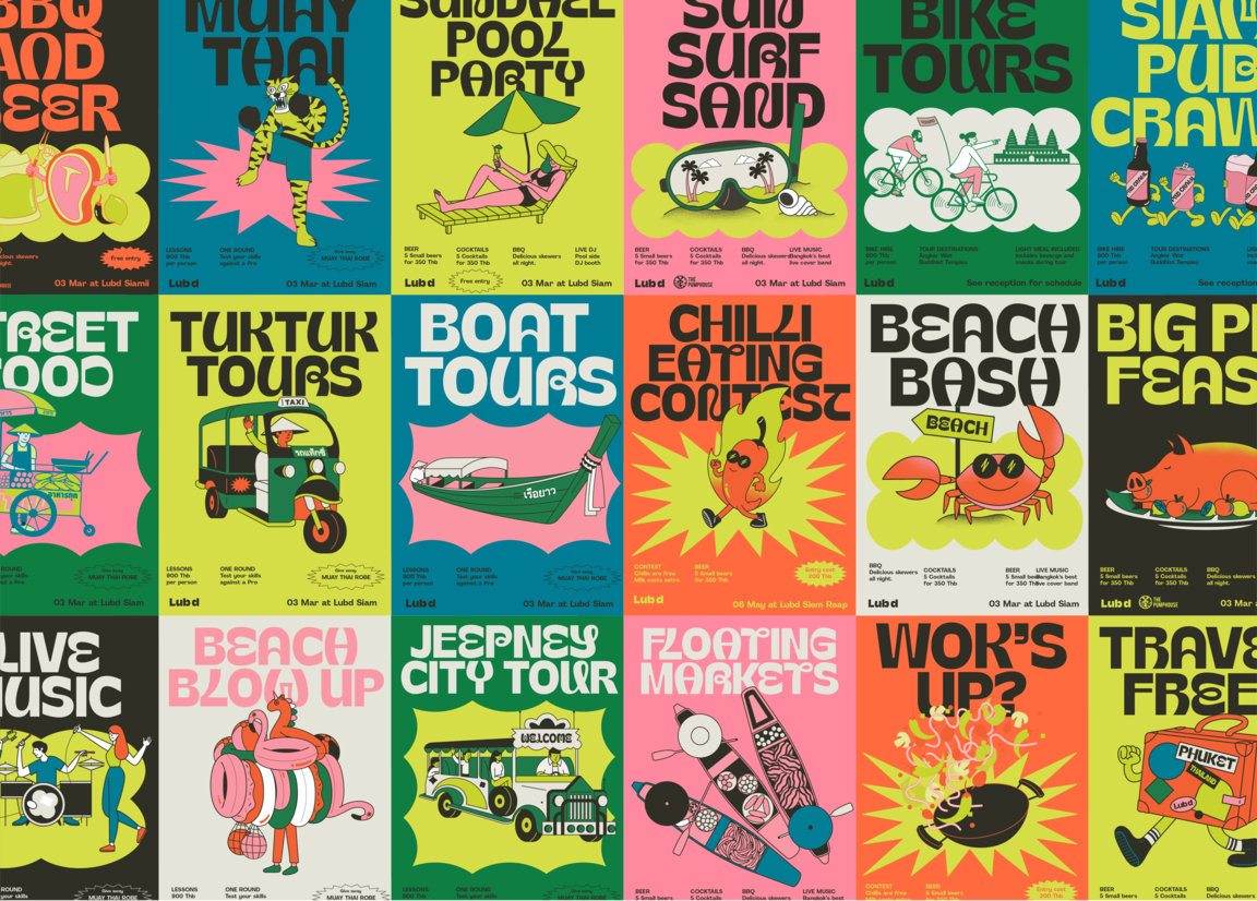 Lub d is a chain of affordable hostels in Southeast Asia. Following a period of rapid category growth and the boom of “social hotels,”, Lub d was left unsure of its role in the market. They weren’t quite a party hostel, nor a modern social hotel. The properties varied in design and quality across locations, and organised tours were becoming a larger and larger part of the offering. As a result, Lub d was struggling to make their case to inbound travellers.