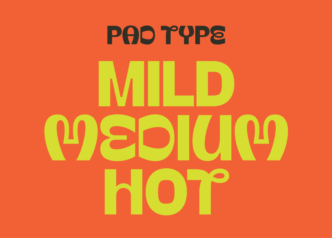 A custom typeface ‘Pad Type’ brings together design traits of regional character sets to create a quirky and playful language. With three weights mild, medium and hot used interchangeably across the identity to bring the brand’s voice to life.