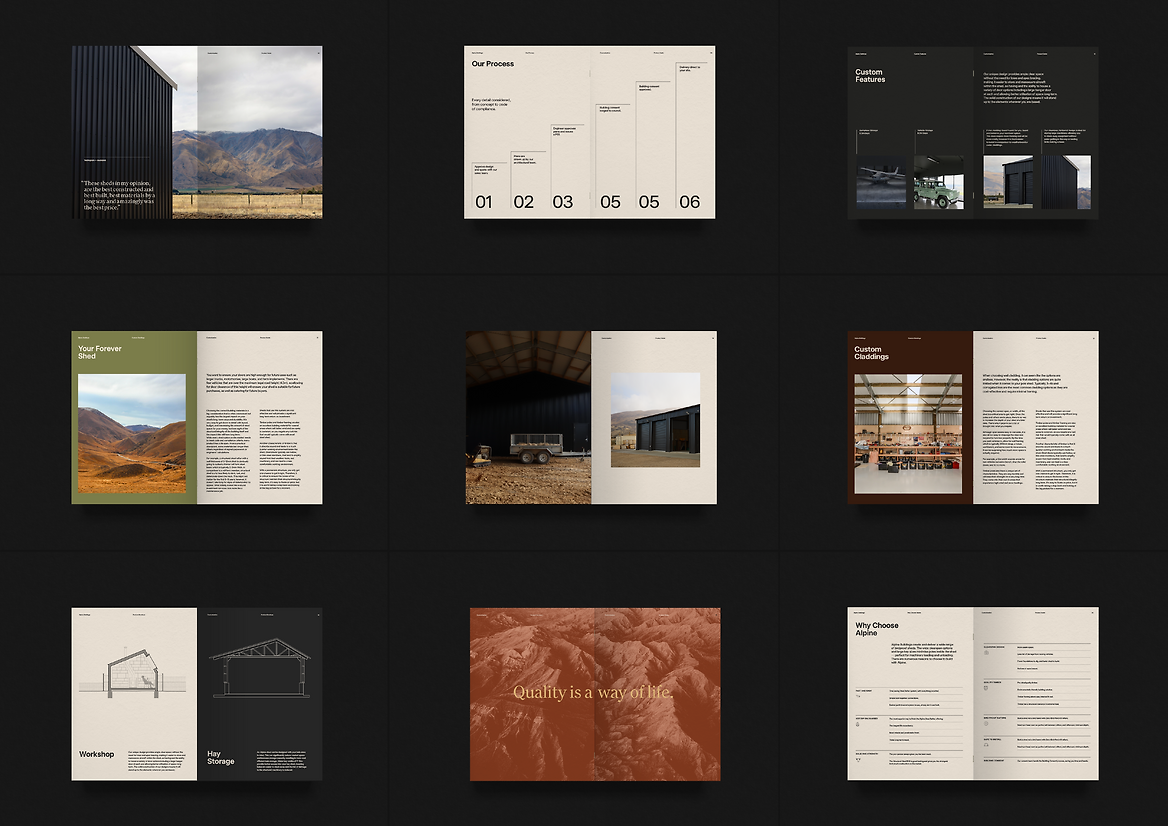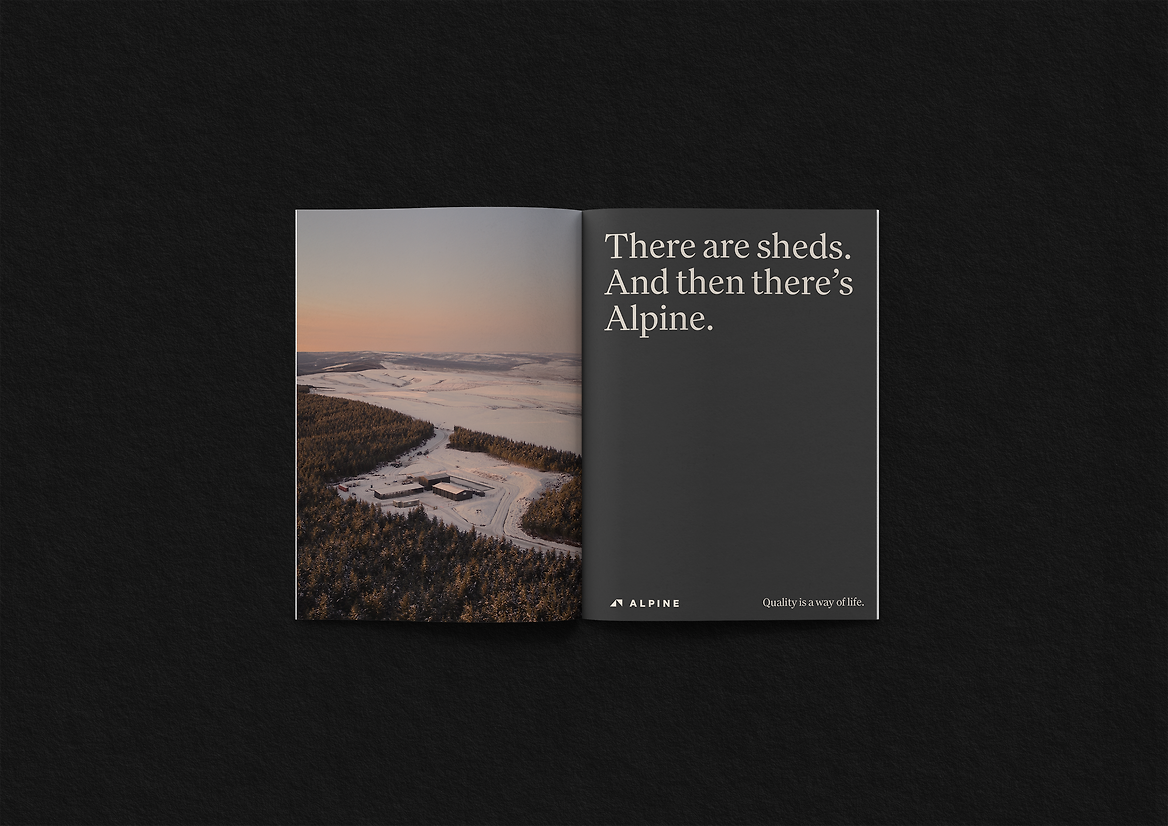 When we met Alpine, they were seeking a voice that would acknowledge their rich heritage, while carrying them into the future. Essentially, Alpine already had the product and the service, but the brand identity needed to catch up to their premium positioning. We learnt through our immersion process that Alpine were already seen as market leaders in this space; both for quality of product and materials, and impeccable service. Our task was to build Alpine a foundational brand strategy, and to leverage this to create a strong visual identity that would stand the test of time. The why for Alpine? To create buildings that endure, and legacies to be proud of. While their competitors were fighting it out in the long list of features and benefits, for Alpine, it was about elevating out of the factual weeds and having the confidence to leave these details as a secondary component.