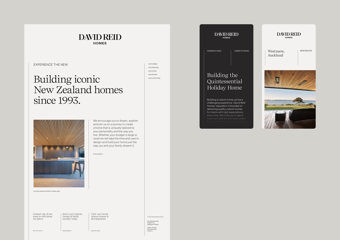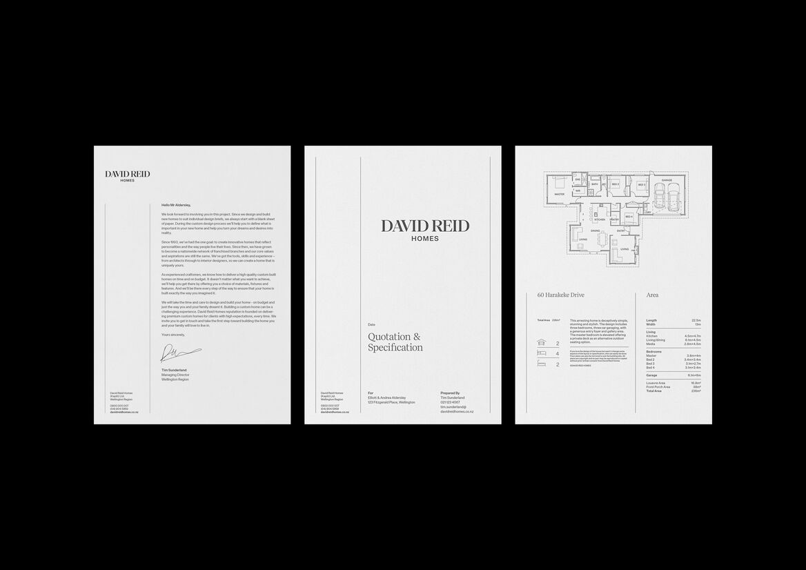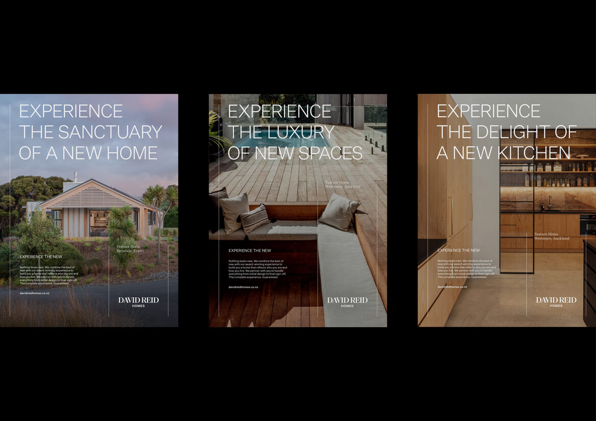 David Reid Homes is an iconic New Zealand name with a proud history of building beautifully crafted, innovative homes. Since 1993, the name has built a reputation of quality, while along with it, a recognisable image and a need to maintain the same high level, bespoke experience that homeowners grew to know and love. Still wanting to retain some identifiable elements and tasked with creating a new direction for David Reid Homes, we set out to refine the brand.