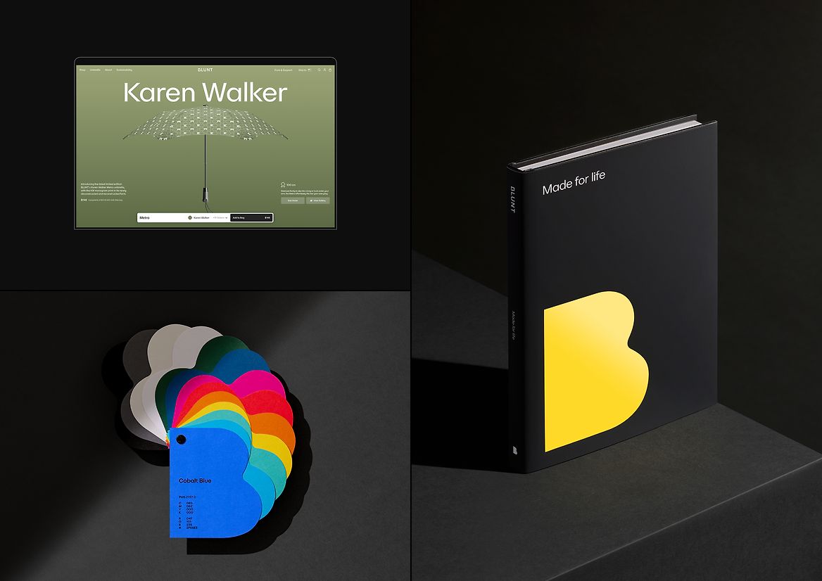 The new wordmark and ‘B’ symbol were designed to connect deeply with the iconic blunt curves of the umbrella and as a shorthand for the new design principles we set with the Blunt team – reduction, beauty, confidence, and joy. They guided every verbal and visual expressions of the brand.