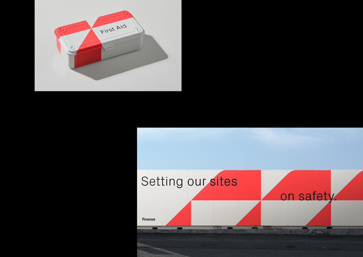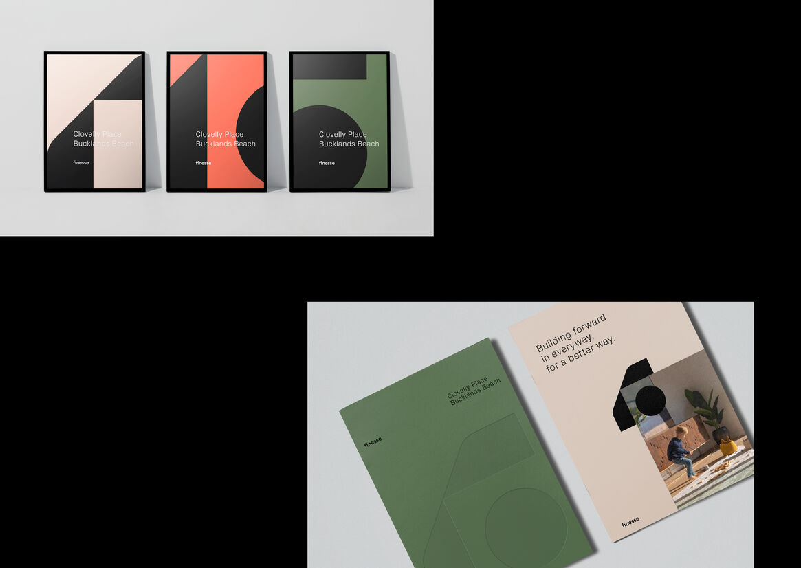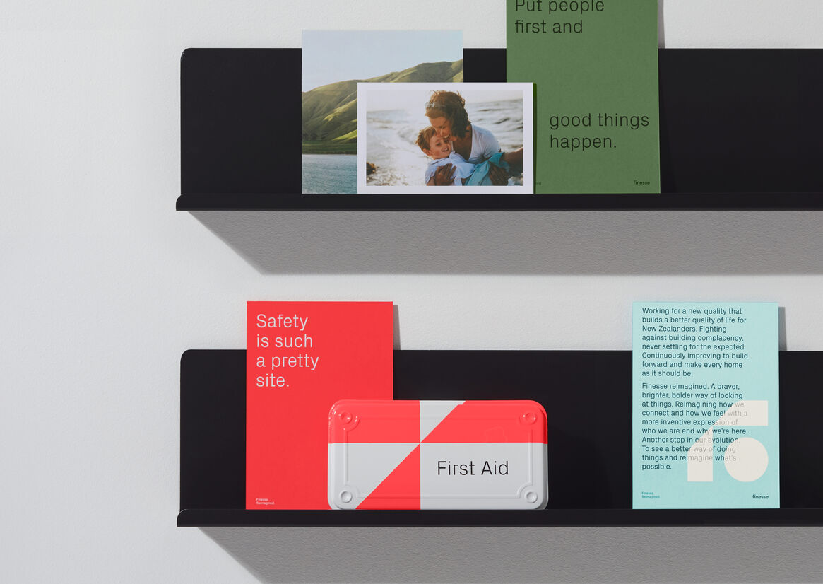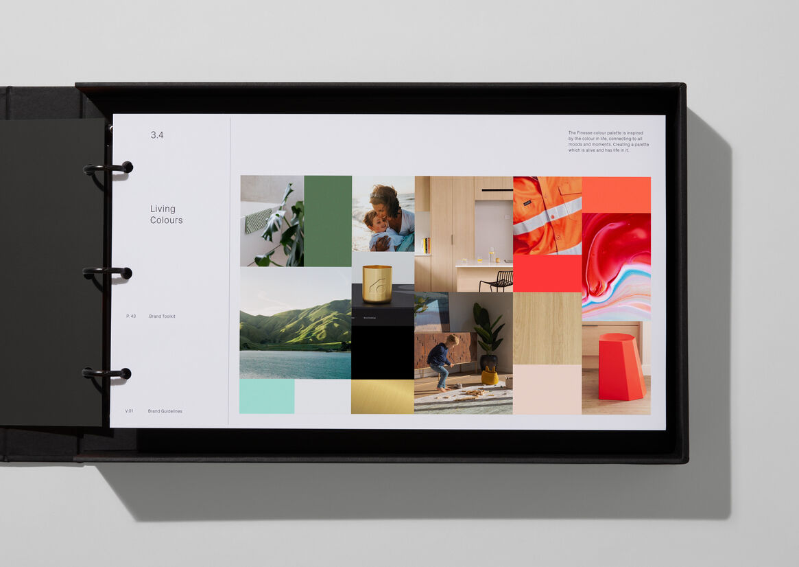 At the core – the Finesse F symbol – for a diverse, flexible, and expressive visual language. The F has a careful balance of strength in values with the heart of people at the centre. The sides of the symbol are inspired by places that feel like home and reimagine how spaces and places can change. With colours of our place, and life, a voice that cuts through with a twist.