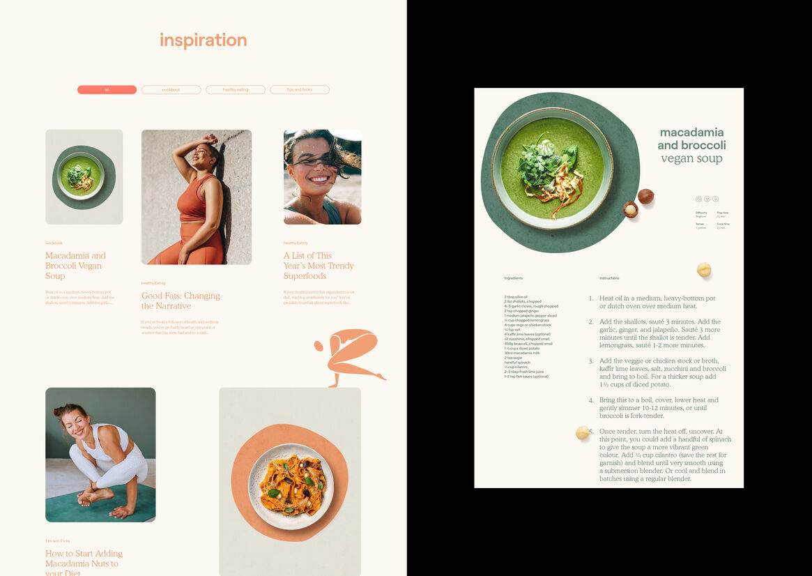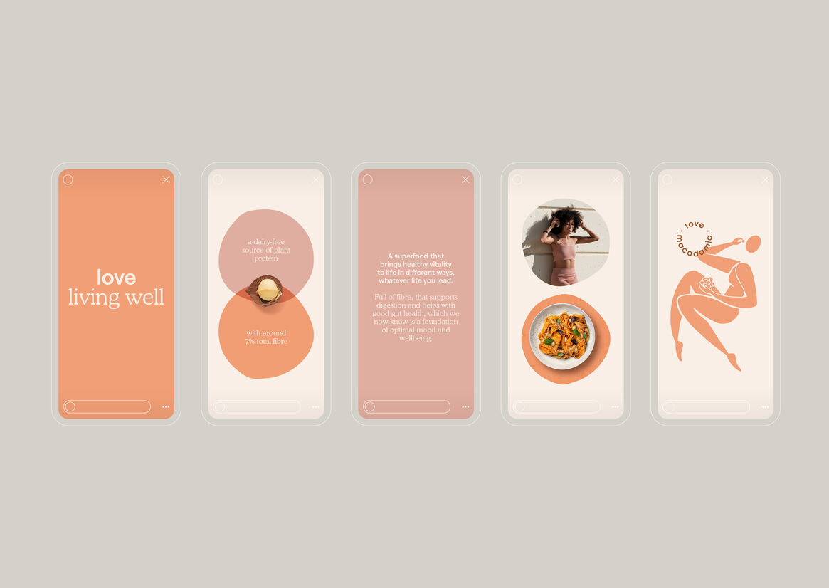 While the proposition is not a product of a single audience, it’s not hard to see how it has been informed; A more feminine colour palette, a gentile suite of fonts, and a soft assuring voice. A distinctive toolkit of lifestyle and wellbeing icons and infographics act as fast-talking motifs. The unifying Macadamia device - a perfectly imperfect circle - also serves to bring sometimes disparate elements together (photography, colour and illustration). And because it would be nuts to think we could do everything from here, a defined design and communication methodology ensures ease of interpretation from localised agencies around the world.