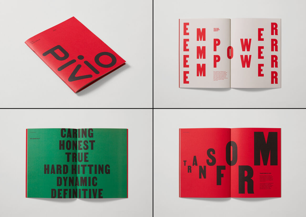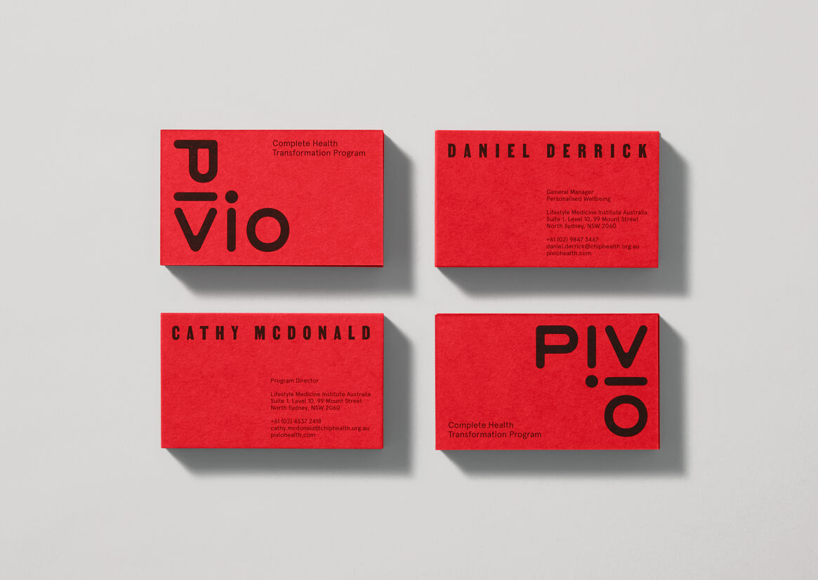 Pivio is life, bold and underlined. It doesn’t go quietly. Built on the very idea of igniting a life revolution, Pivio is a watershed moment in the journey to personal transformation. Gone are the ubiquitous medical blues and reassuring pastels so typically associated with therapeutic branding. Pivio is red and emphatic and now: all powered up, and all empowering.