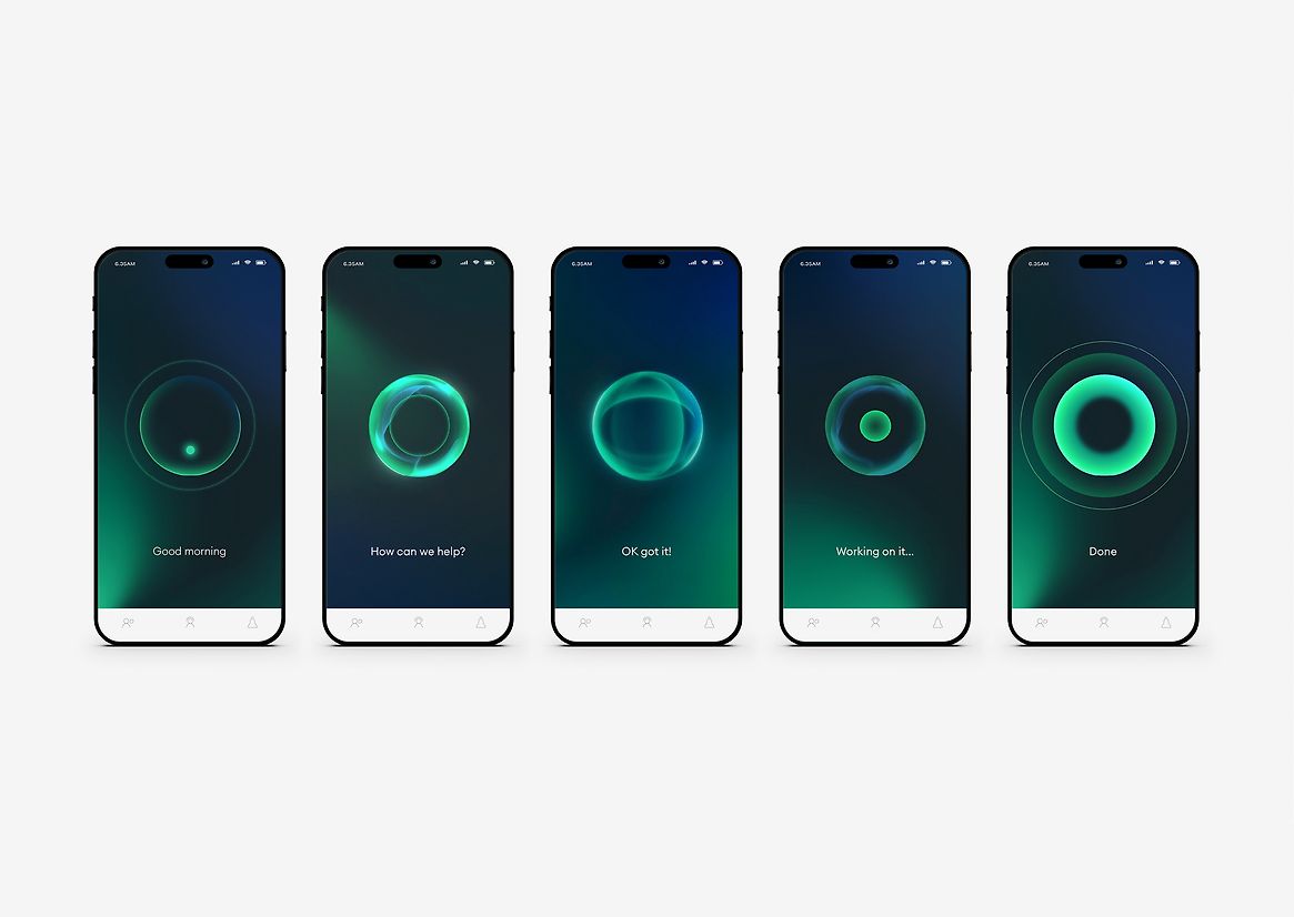 The logo was brought alive with different animated interactive user states: wake up, standby, listening, thinking, and action. Some of these were combined for launch into the brand's animated end frame, combined with our new unique brand mnemonic.