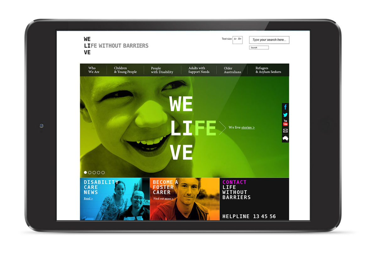 Graphic Business Communication Colour Award Graphics Design Communication Design Craft Editorial and Books Environmental Graphics Large Brand Identity Packaging Self Promotion Small Brand Identity Student & Academic Graphics Animation Digital Film Graphic Moving Image (archived 2025) Product Social Good Award Spatial Toitanga Value of Design Award User Experience Award (archived 2019) All categories Business Communication Colour Award Graphics Design Communication Design Craft Editorial and Books Environmental Graphics Large Brand Identity Packaging Self Promotion Small Brand Identity Student & Academic Graphics All years 2025 2024 2023 2022 2021 2020 2019 2018 2017 2016 2015 2014 2013 2012 2011 2010 Studio A-Z Principals 28 Life Without Barriers (LWB) Rebrand Finalist 2014 Large Brand Identity Credits Pou Auaha / Creative Directors Simon Wright, Darren Swain Ngā Kaimahi / Team Member Darlene Ward Client Life Without Barriers