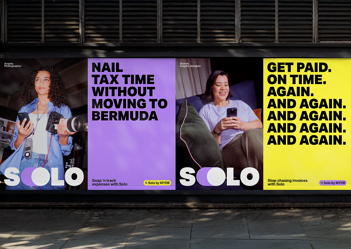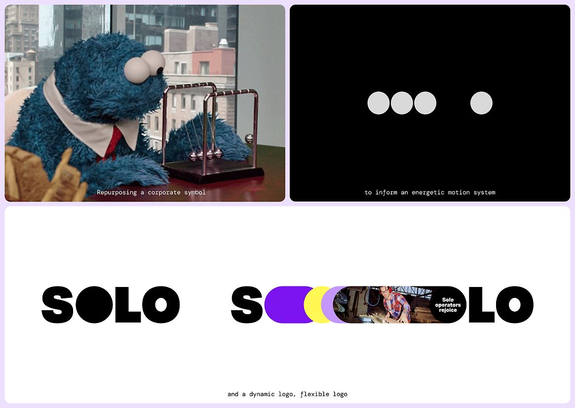 Bold colours, an unapologetic typeface, and a refreshingly unbusinessy tone of voice all help set Solo apart—it’s far from the boring corporate world, and speaks your language.