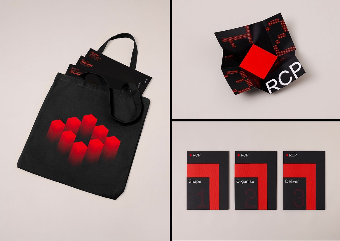 Taking inspiration from the built environment and the people who help shape, organise, and deliver it, RCP's new identity builds on its well-recognised red diamond and supports it with a family of uniquely-ownable graphics and a timeless primary palette.