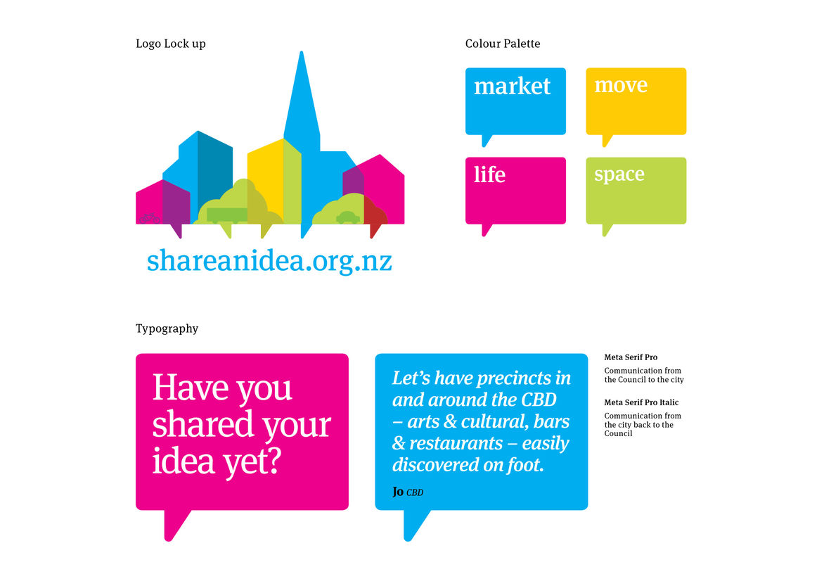 Graphic Business Communication Colour Award Graphics Design Communication Design Craft Editorial and Books Environmental Graphics Large Brand Identity Packaging Self Promotion Small Brand Identity Student & Academic Graphics Animation Digital Film Graphic Moving Image (archived 2025) Product Social Good Award Spatial Toitanga Value of Design Award User Experience Award (archived 2019) All categories Business Communication Colour Award Graphics Design Communication Design Craft Editorial and Books Environmental Graphics Large Brand Identity Packaging Self Promotion Small Brand Identity Student & Academic Graphics All years 2025 2024 2023 2022 2021 2020 2019 2018 2017 2016 2015 2014 2013 2012 2011 2010 Studio A-Z Strategy Creative 157 Share an Idea 2011 Large Brand Identity Credits Ringatoi Matua / Design Director Guy Pask Ngā Kaimahi / Team Members Clayton Dixon, Hamish Childs, Laura Gritffiths Client Christchurch City Council