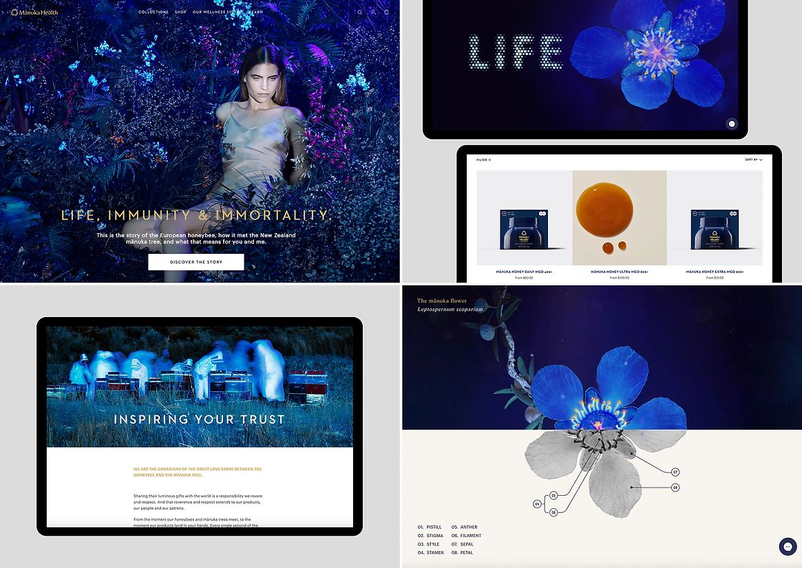 Working with photographer Craig P. Burrows we documented the world of flowers and the Manuka Tree as seen through the eyes of the honeybee – in UV. The unique images became the visual language for the brand, from the packaging to the on-line storytelling, to the web site, social, film and promotional posters along with the launch of a book and an exhibition.