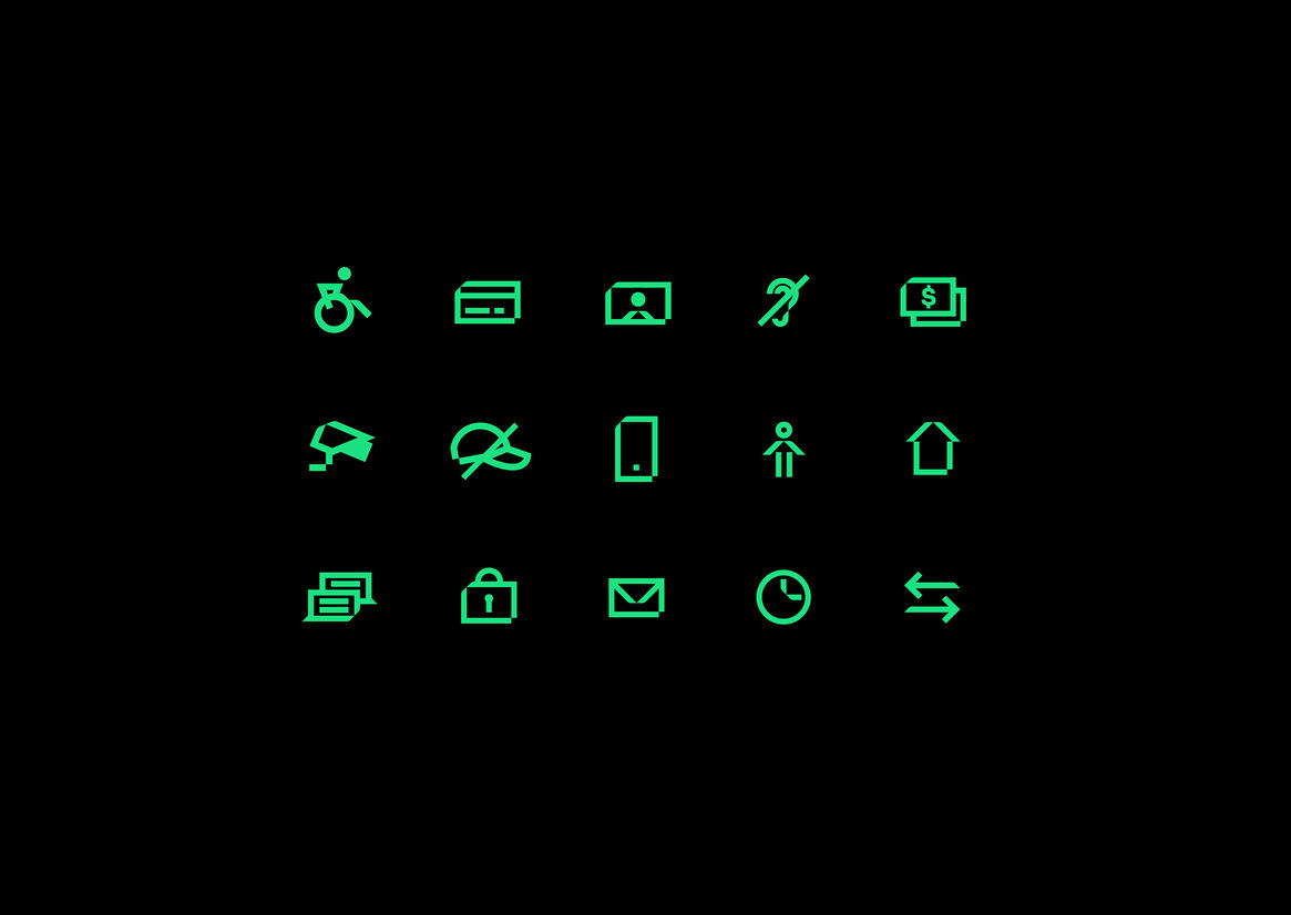 The identity system sets the bank up with a distinctive visual language that not only connects all touchpoints of the bank from physical to digital, but injects a freshness and modernity into each.