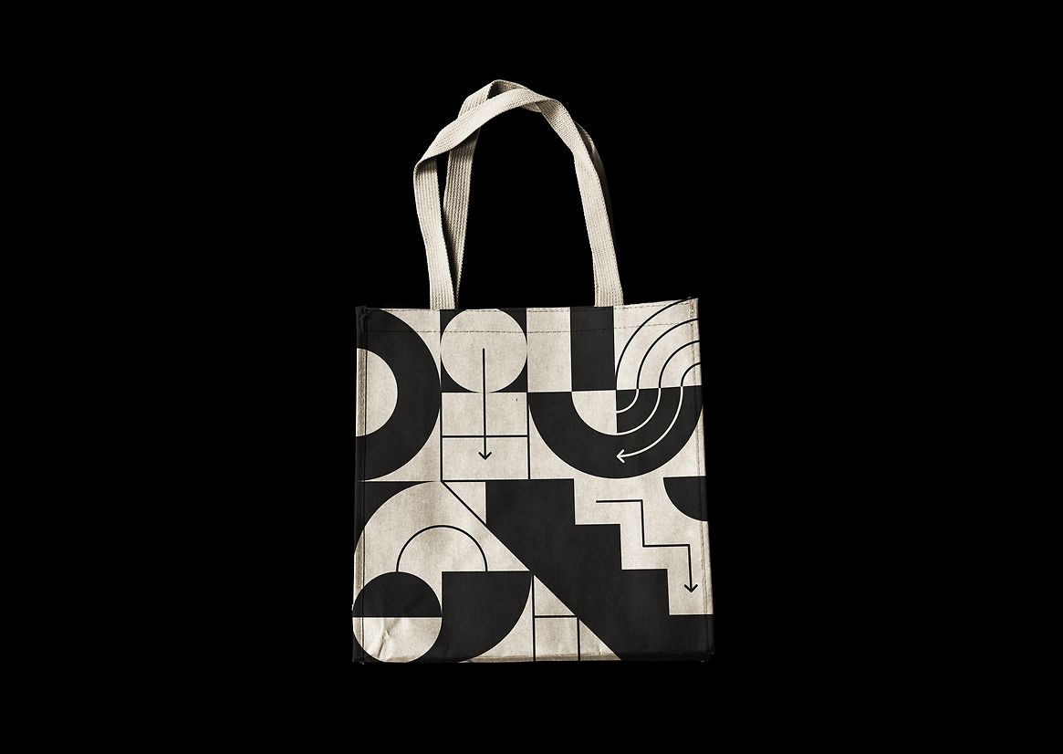 The centrepiece of the visual identity is a geometric illustration, taking cues from the site’s architectural past and present. The bounding grid mimics the repetitive orthogonal lines expressed in the modernist tower above. Motifs of a subterranean landscape interact with those of hospitality and play; steps, curving tunnels, directional arrows and dinner plates, filling the static grid with life and movement.
