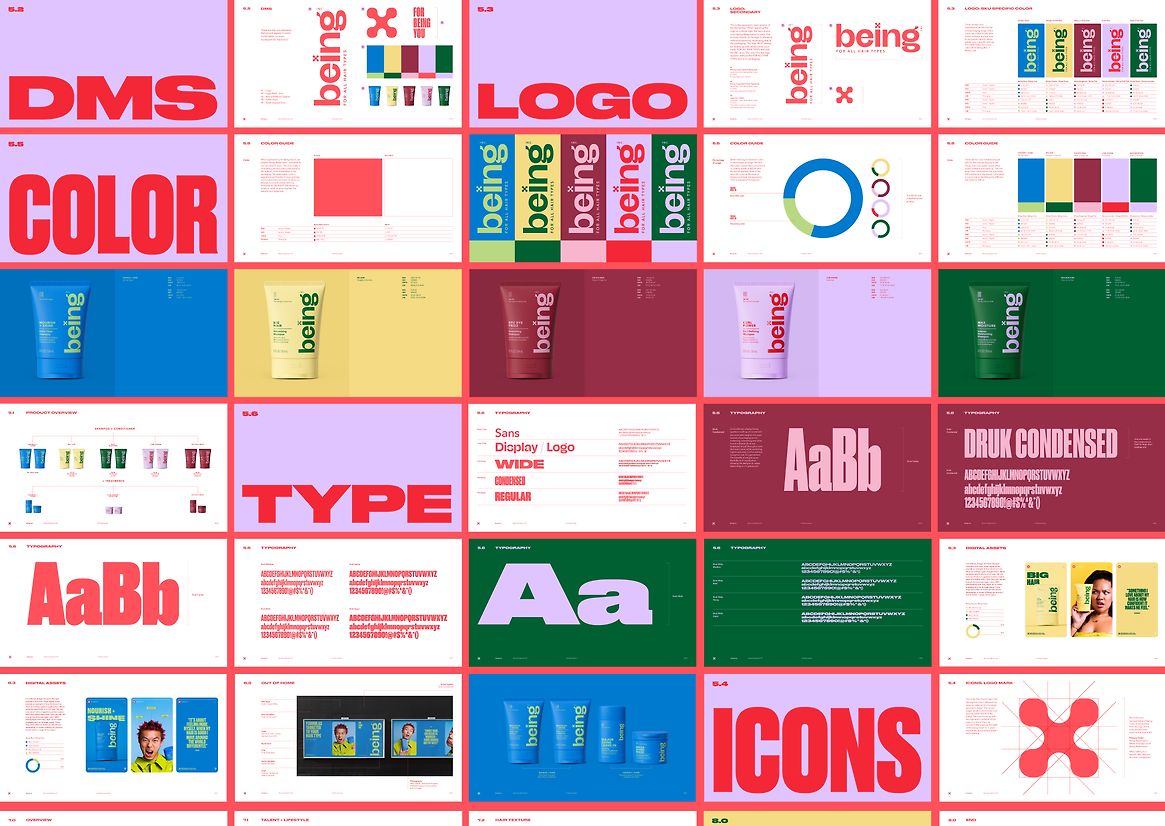 Being’s packaging is designed with universal principles in mind, featuring soft tubes for easy one-handed use. Lids have extended lips for effortless opening, catering to those with limited dexterity. Tactile indicators have been incorporated onto the bottles to help individuals with visual impairments distinguish between the shampoo (indicated by stripes) and conditioner (identified by circles). These markers also serve as additional grip to facilitate opening the tubes. Genderless colour schemes avoid traditional gender associations and promote inclusivity. The colour combinations and large typography were carefully selected to accommodate those with the most common forms of colour blindness, ensuring ease of navigation, while the ‘X’ icon, representing the five different hair types in the Being range, serves as a central brand marque used across multiple touchpoints.