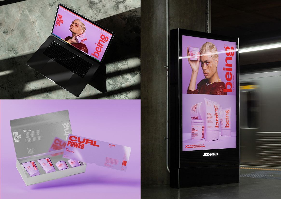 The brand campaign, "For Being You," reiterates the brand platform by celebrating individuality and inclusivity. Through the stories of five individuals, each representing a different hair type, the campaign honours self-expression, uniqueness, and diversity. This idea flows through to other collateral, such as the high-shine, reflective gift boxes, which encourage recipients to look in the mirror and celebrate their unique selves.